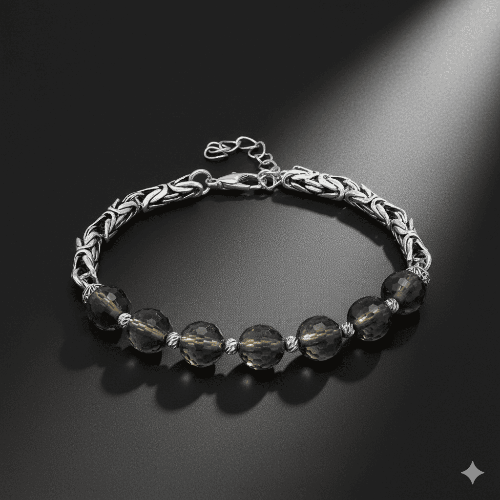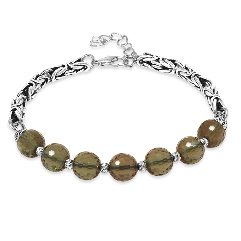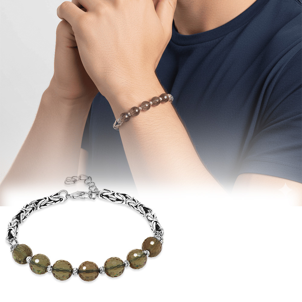 Kararmaz Metal Kral Zincirli Gümüş Renk Dorika Top Süslemeli Küre Kesim Zultanit Taşı Erkek Bileklik