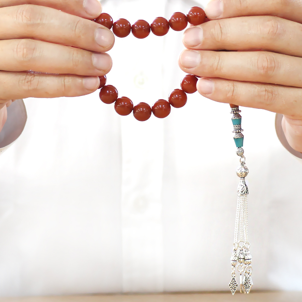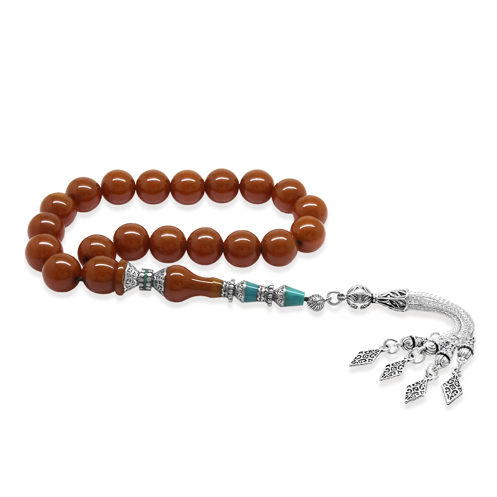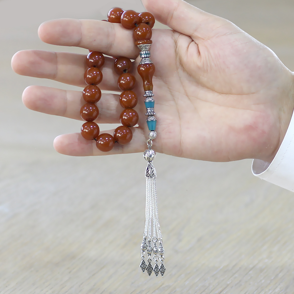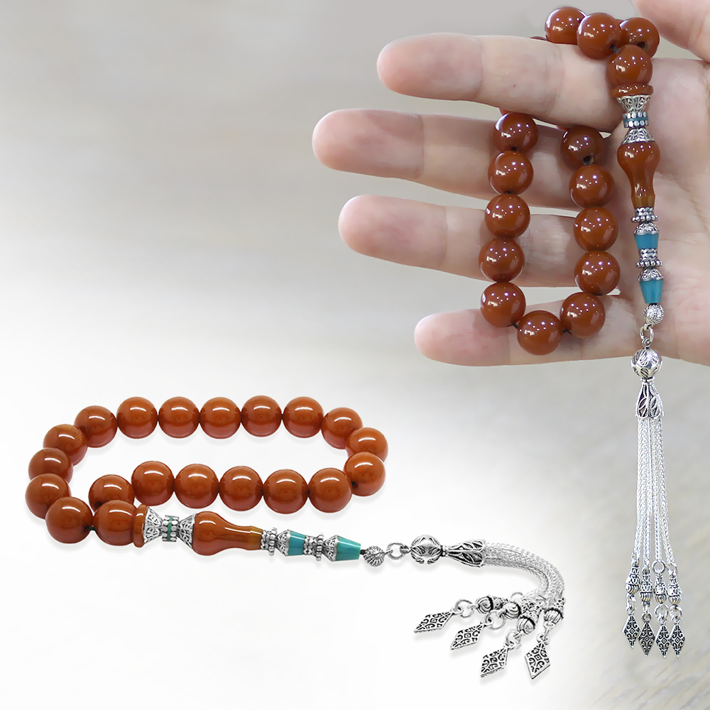 Kararmaz Metal Püsküllü Alpaka Nakkaş İmameli Turuncu Sıkma Kehribar Efe Tesbih Küre Kesim
