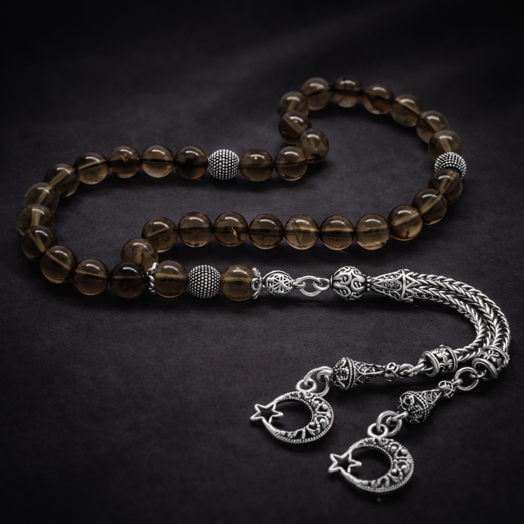 Kararmaz Metal Püsküllü Küre Kesim Kuvars Doğaltaş Tesbih