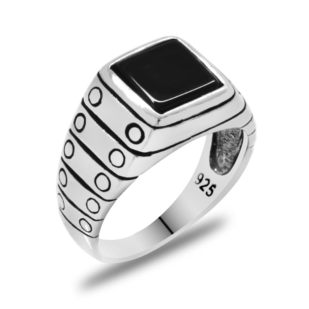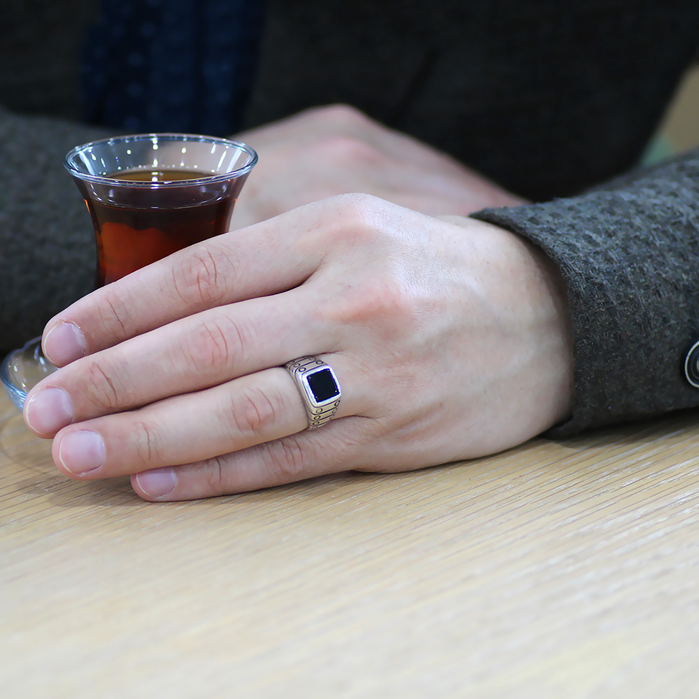 Kare Oniks Taşlı Elegance Tasarım 925 Ayar Gümüş Erkek Yüzük