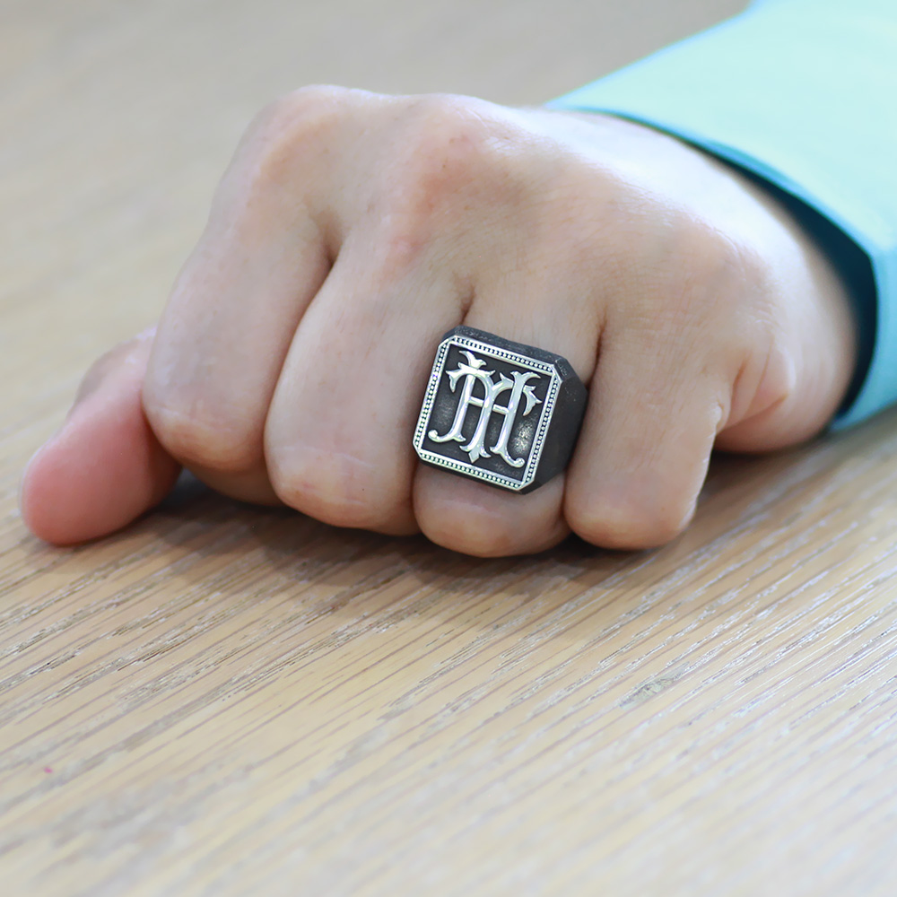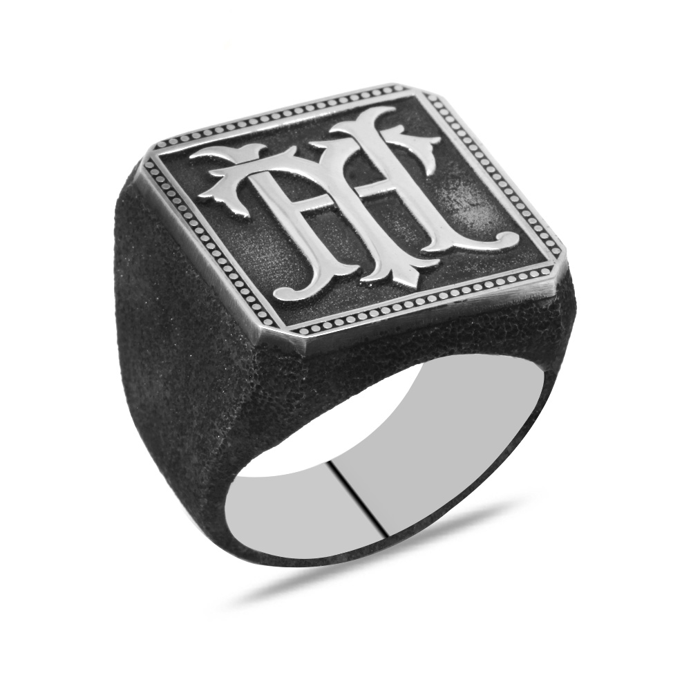 Kare Tasarım İsme Özel Harf Yazılı 925 Ayar Gümüş Erkek Yüzük