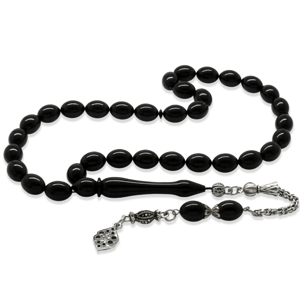 Katalin Tesbih - Kararmaz Metal Arnavut Püsküllü - Özel Kesim - Siyah Renk