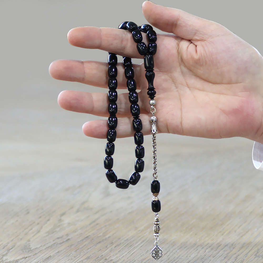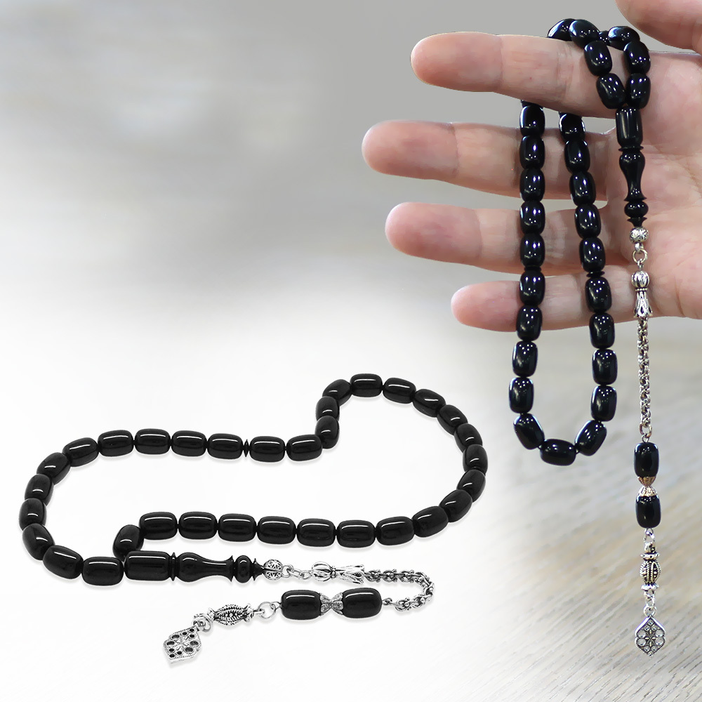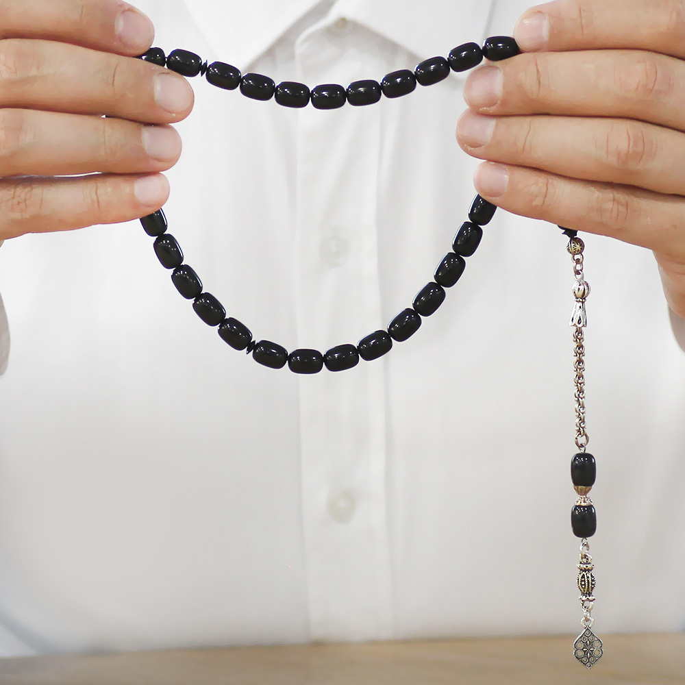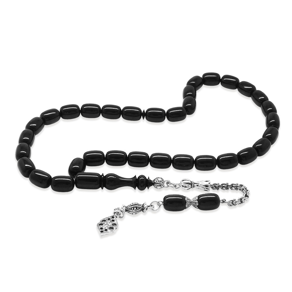 Katalin Tesbih - Kararmaz Metal Arnavut Püsküllü - Siyah Renk - Kapsül Kesim