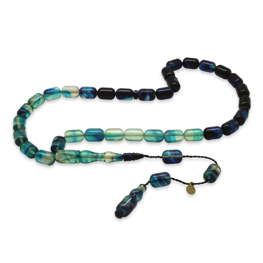 Katalin Tesbih - Sistemli - Süzme Beyaz Mavi Renk - Kapsül Kesim