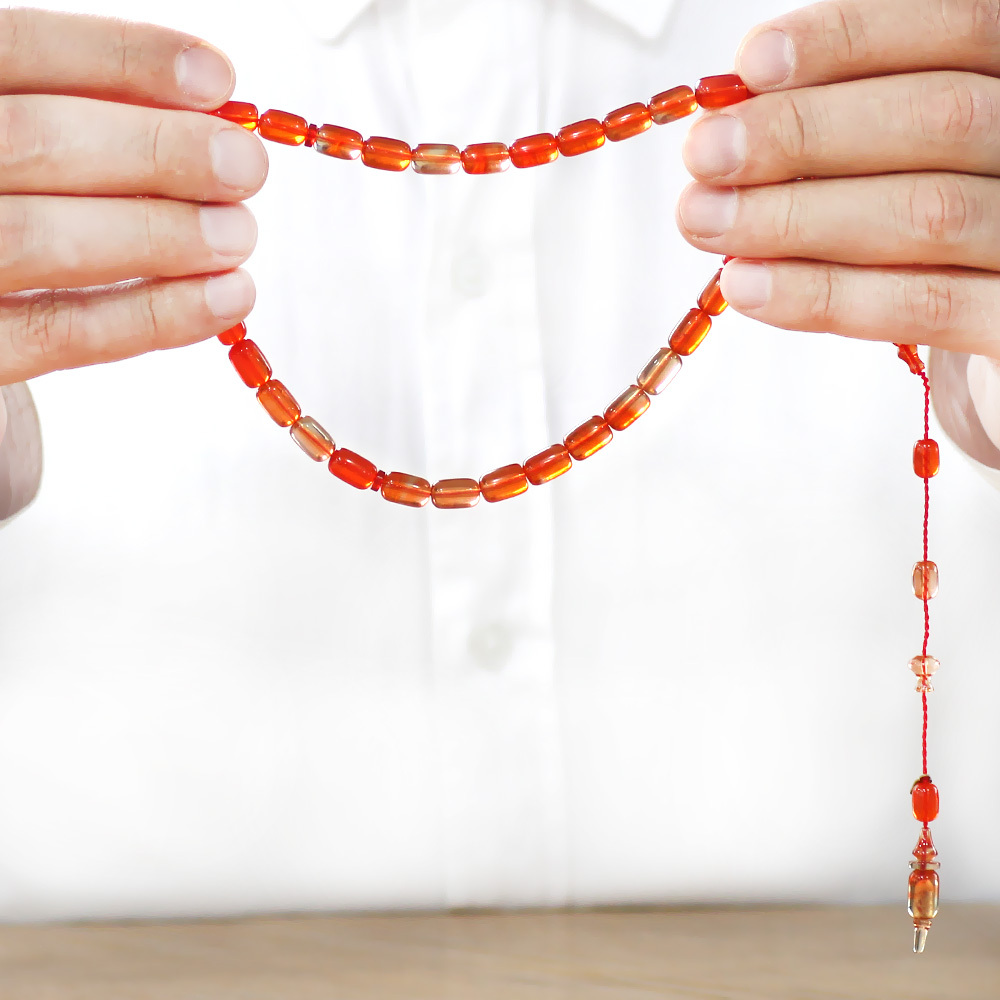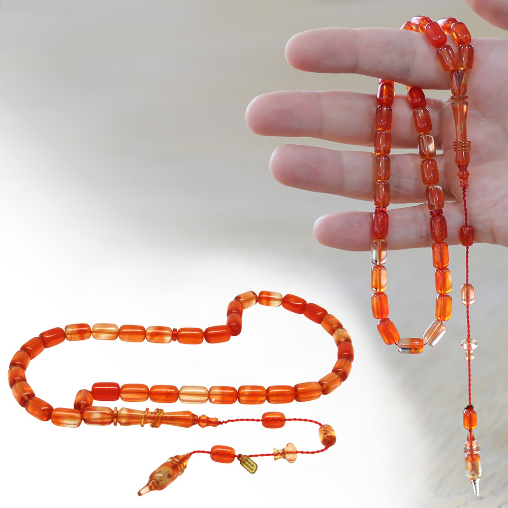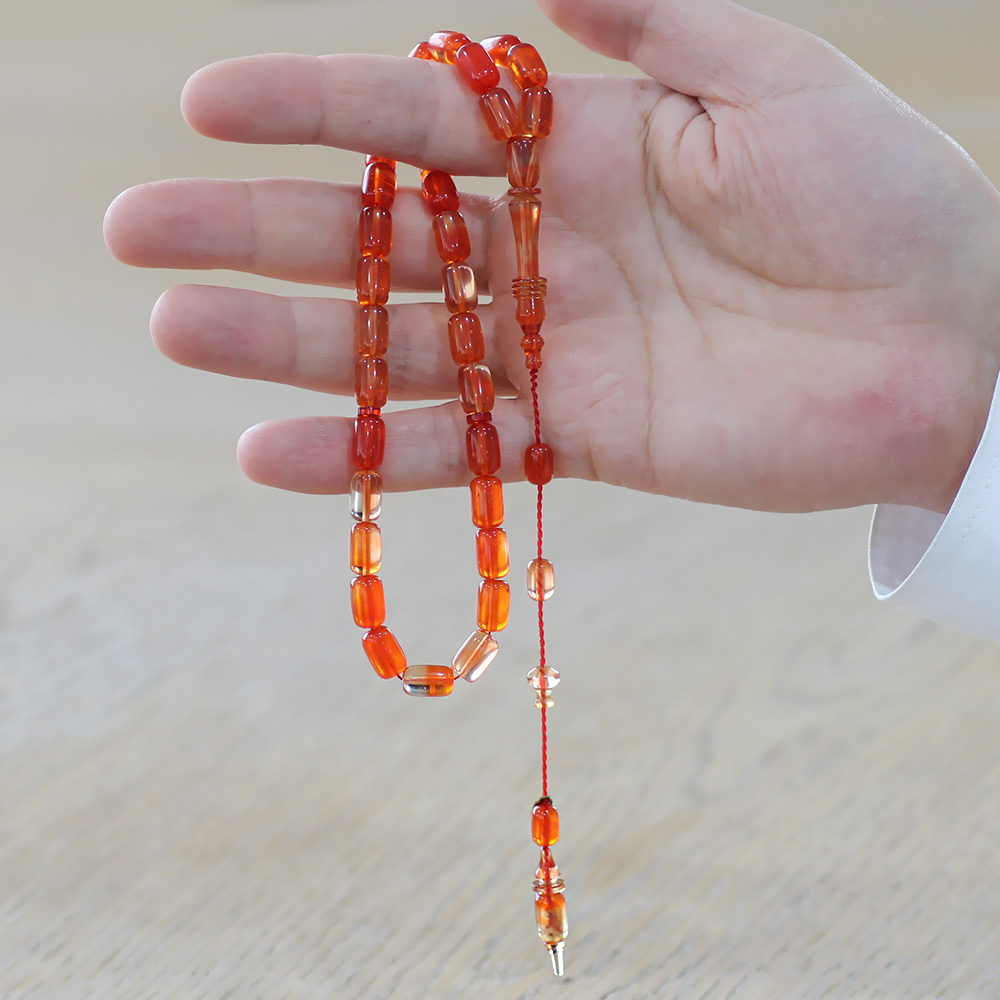 Katalin Tesbih - Sistemli - Usta İşçilikli - İmamesi Halkalı - Turuncu Renk - Kapsül Kesim