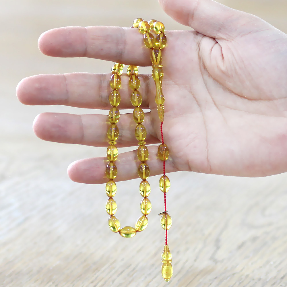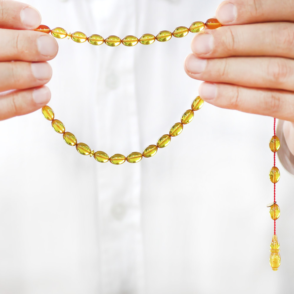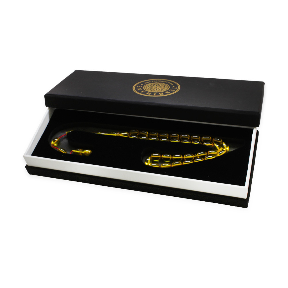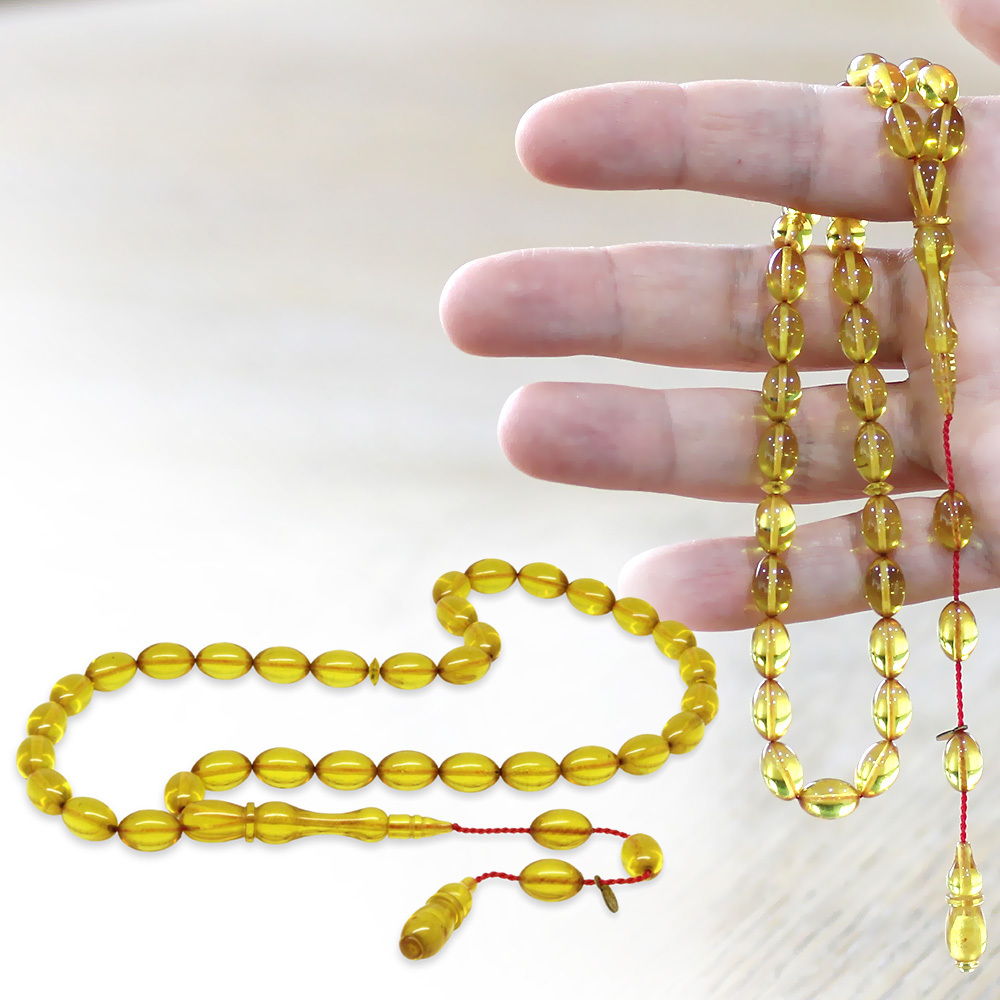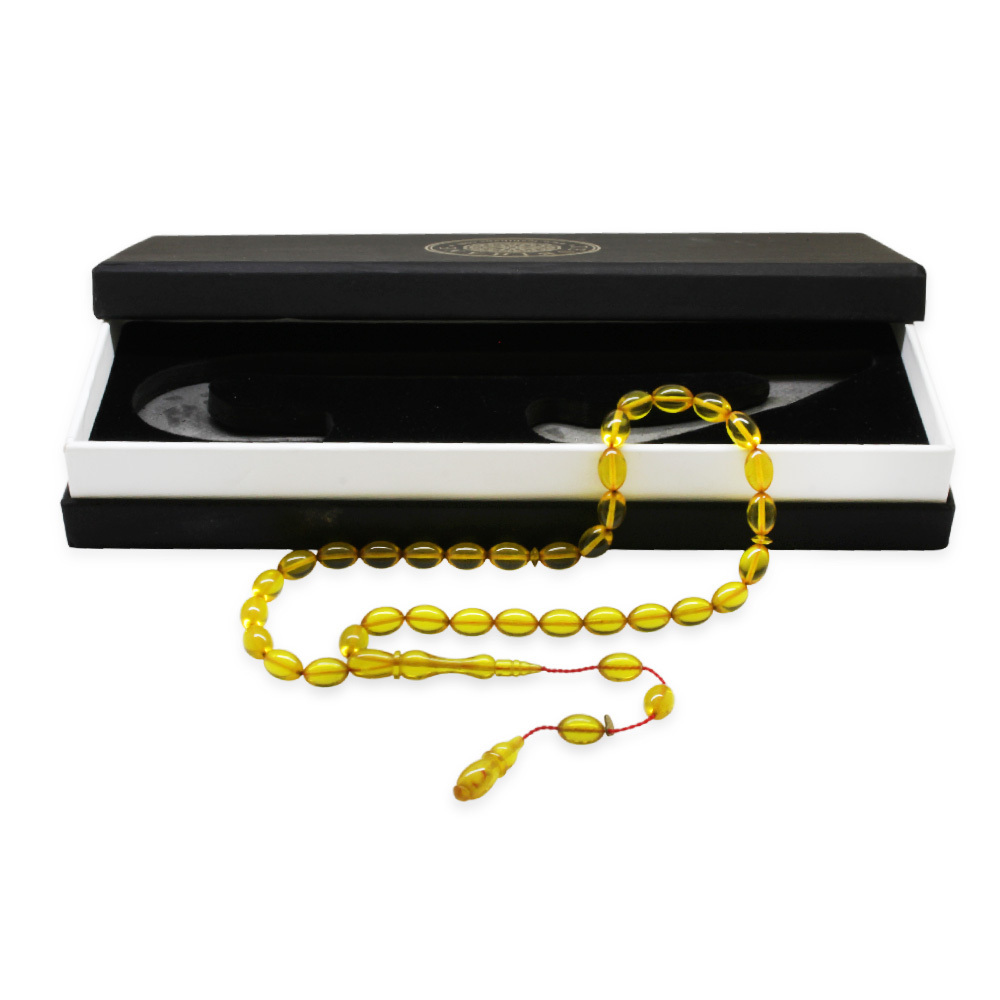Katalin Tesbih - Sistemli - Usta İşçilikli - Özel Kutulu - Sarı Renk - Arpa Kesim