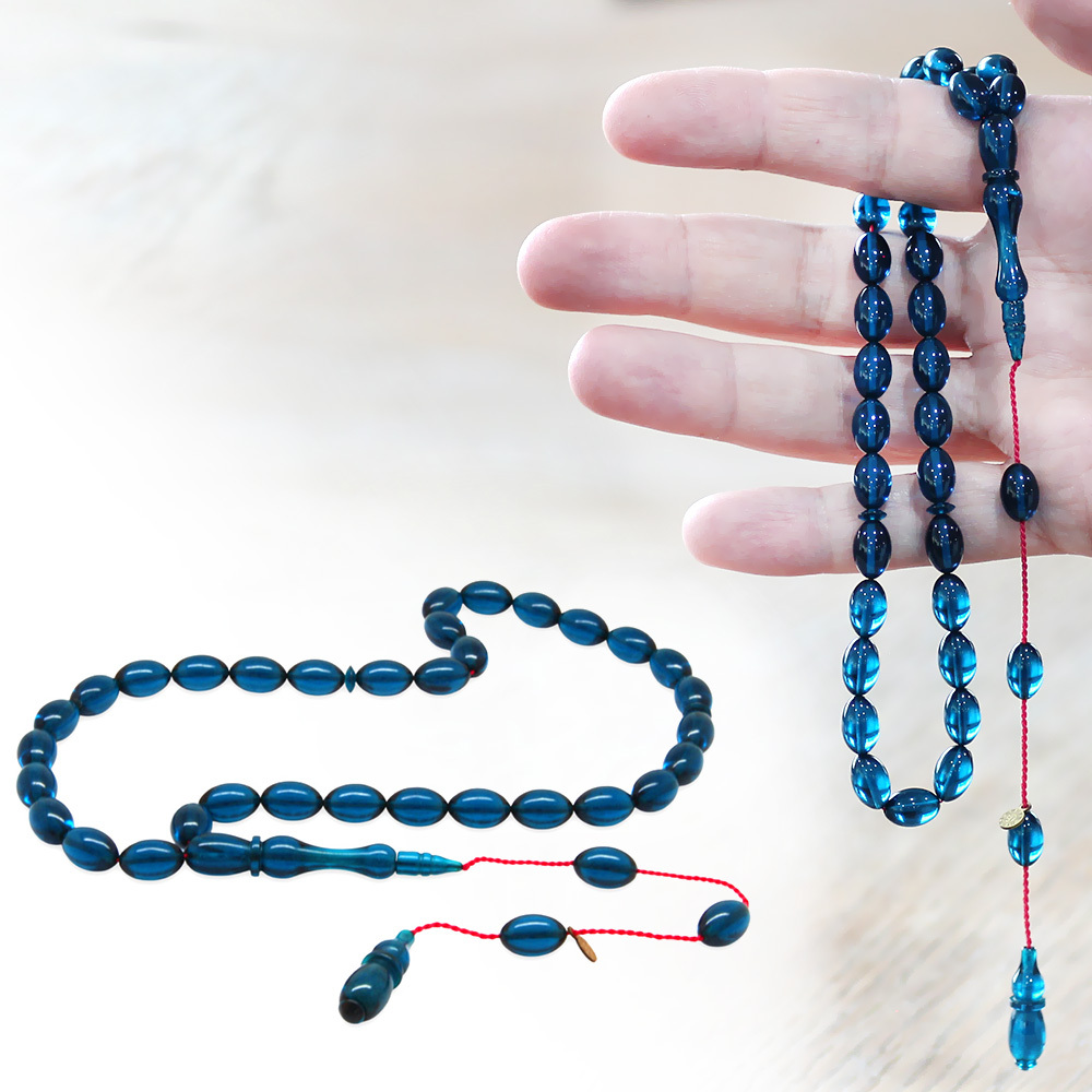 Katalin Tesbih - Sistemli - Usta İşçilikli - Özel Kutulu - Turkuaz Renk - Arpa Kesim
