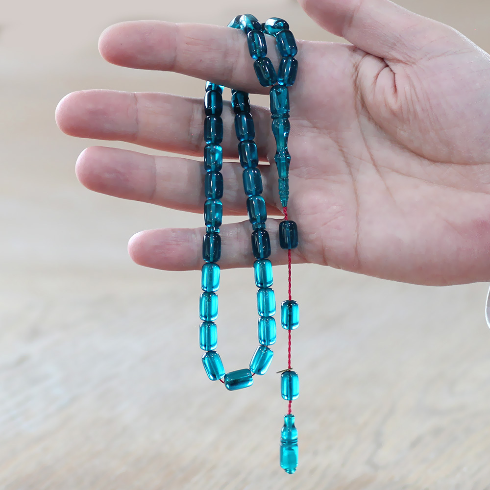 Katalin Tesbih - Sistemli - Usta İşçilikli - Özel Kutulu - Turkuaz Renk - Kapsül Kesim