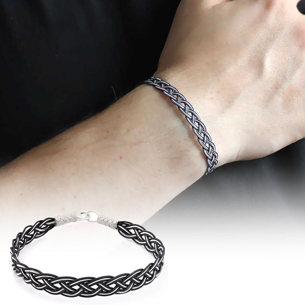 El İşçiliği Siyah Beyaz 1000 Ayar Gümüş Kazaz Bileklik