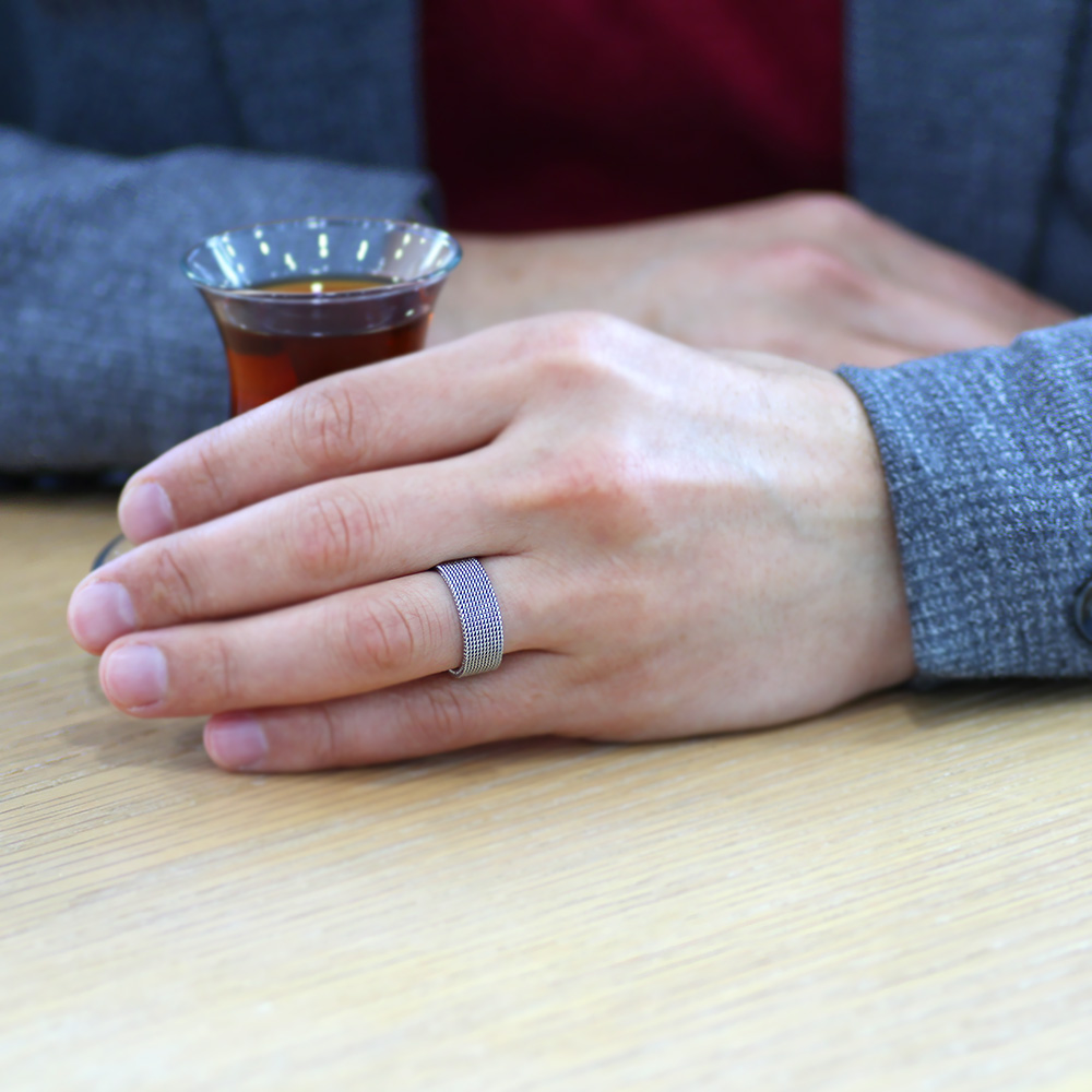 Kazaziye Tasarım Gümüş Renkli 917 Kalite Paslanmaz Çelik Erkek Yüzük - 22 Ölçü