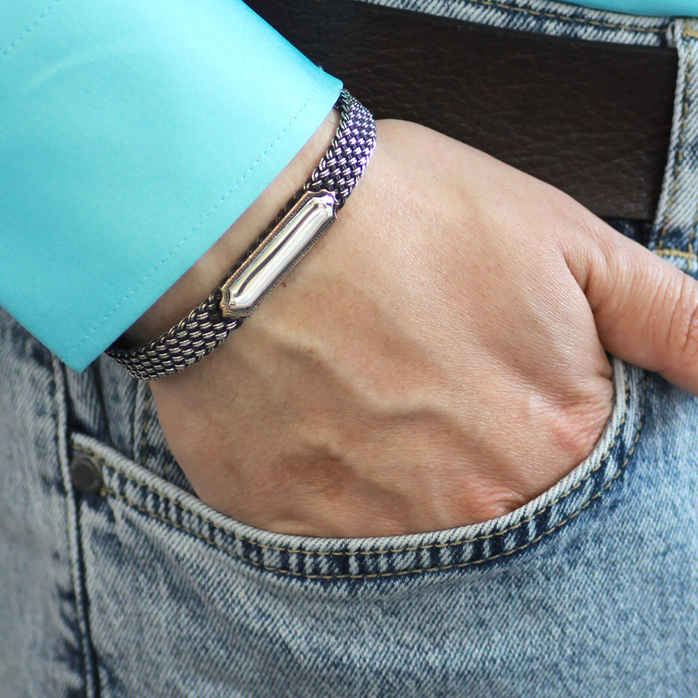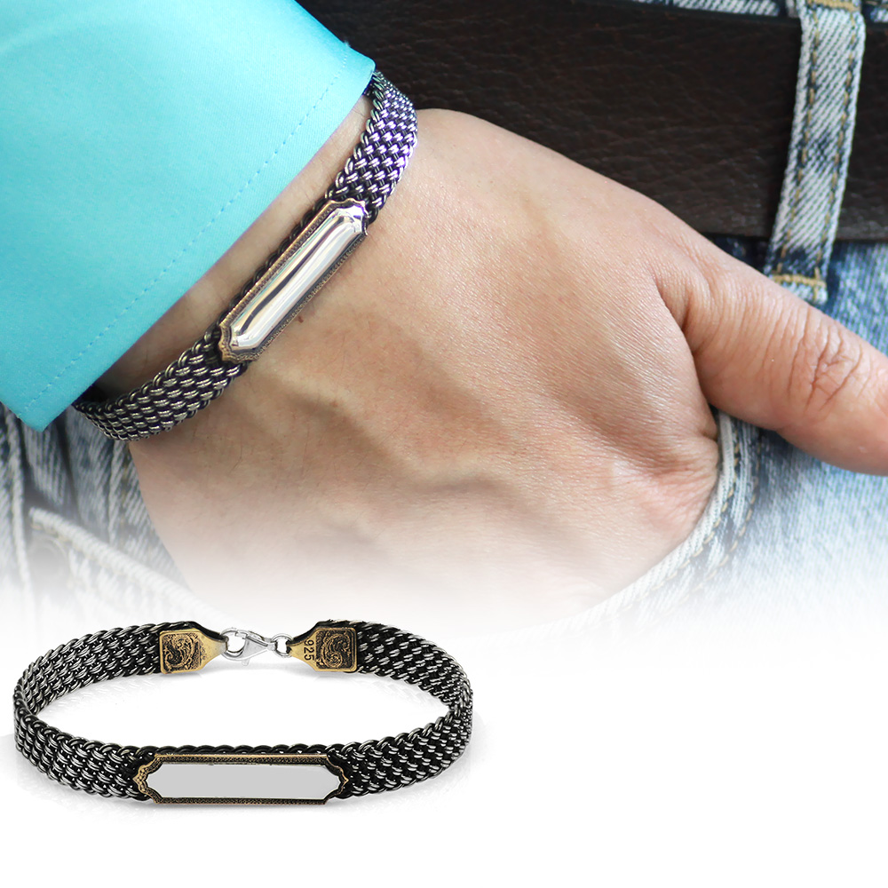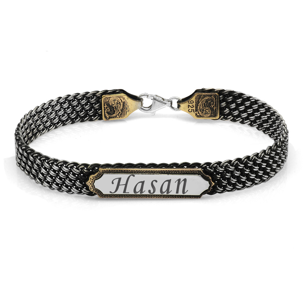 El İşçiliği Kazaziye Tasarım İsme Özel Yazılı 925 Ayar Gümüş Erkek Bileklik