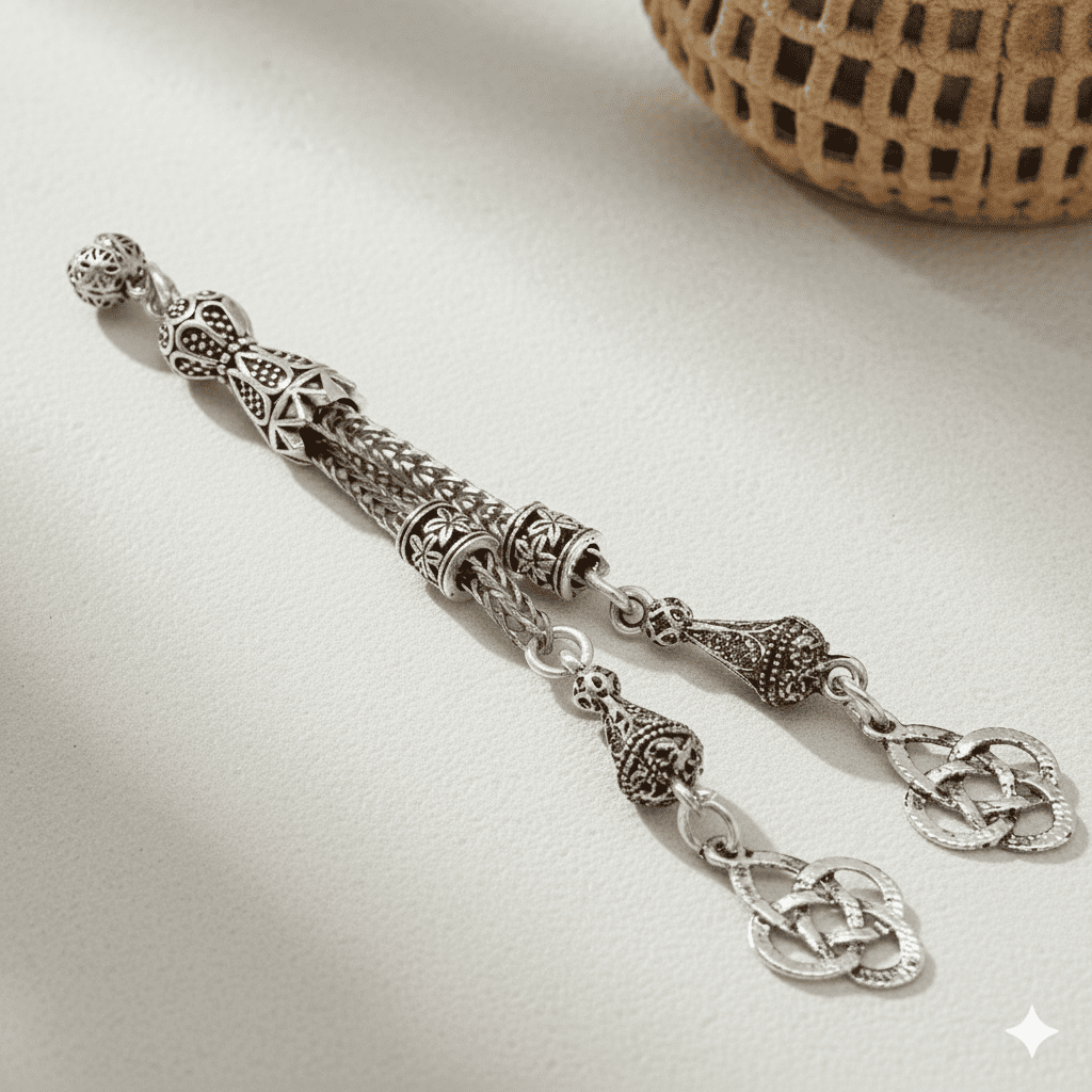 Kazaziye Temalı Foxtail Zincirli Çift Kamçılı Kararmaz Metal Püskül
