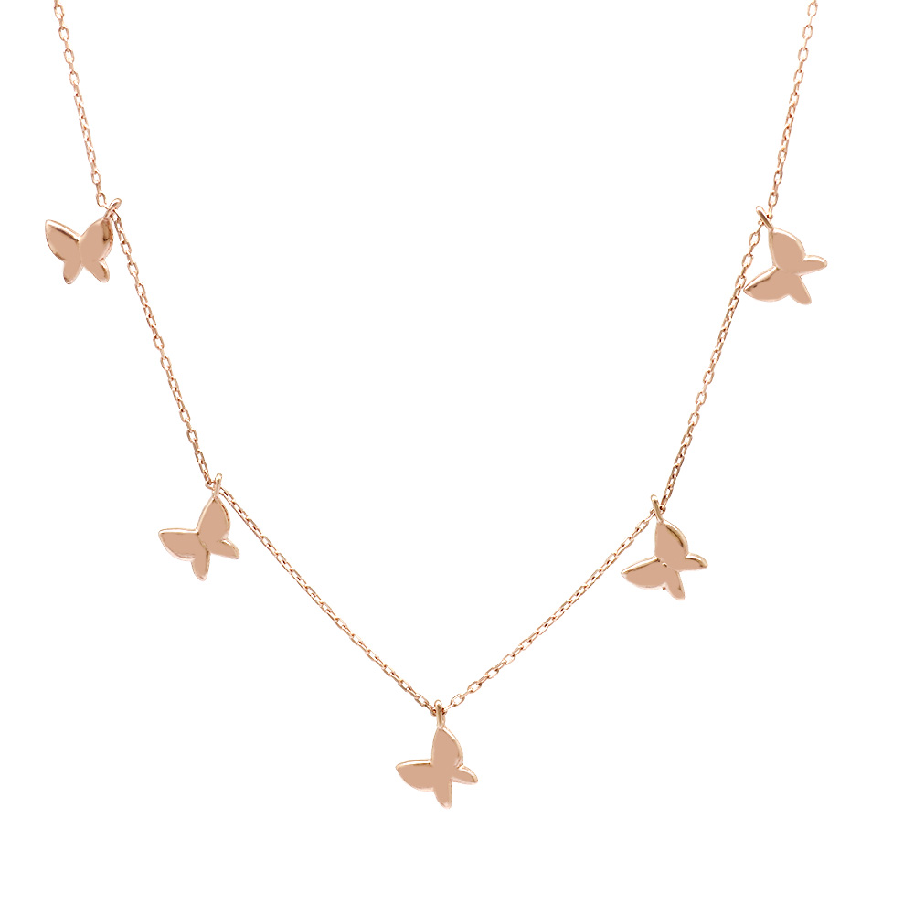 Kelebek Detaylı Rose Renk 925 Ayar Gümüş Kadın Şans Kolyesi