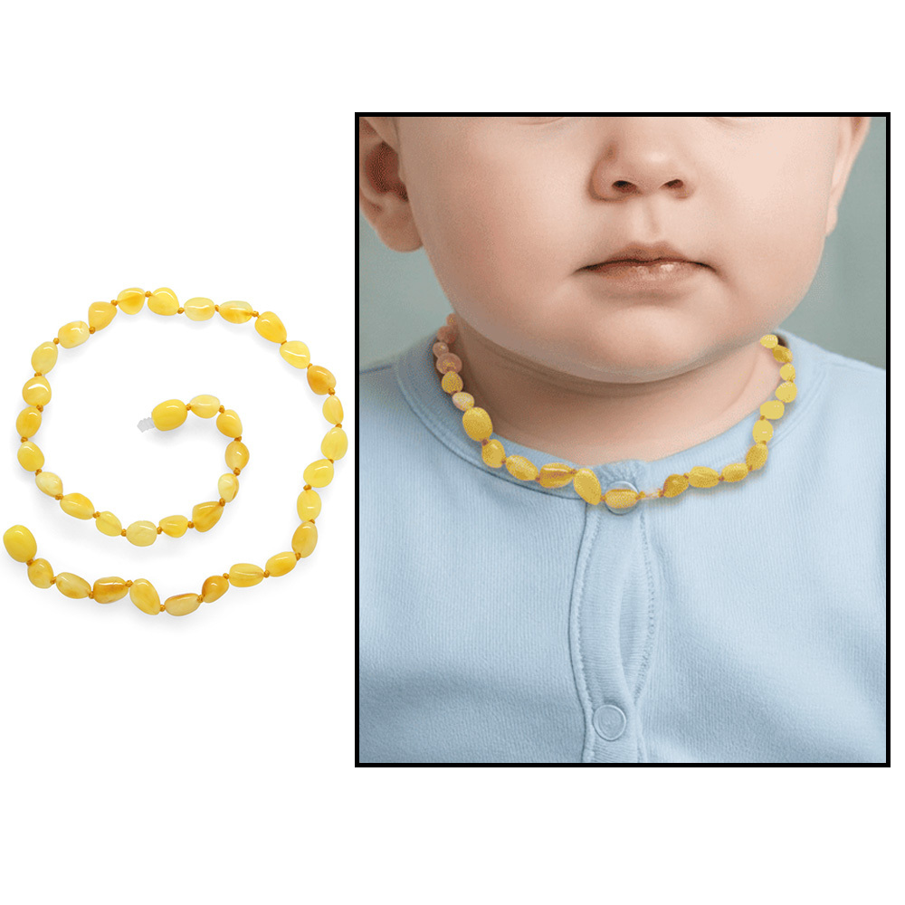 Kınalı Doğal Damla Kehribar Taşlı Bebek Diş Kolyesi - 4