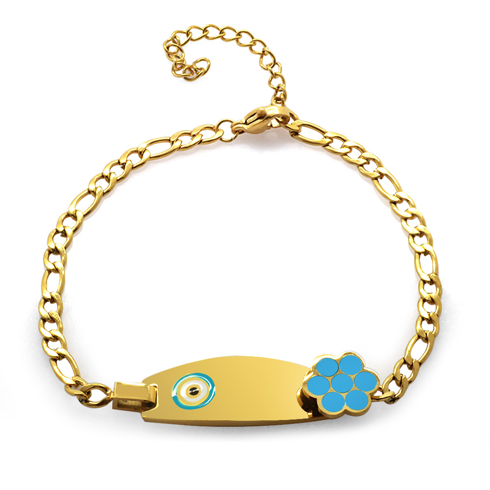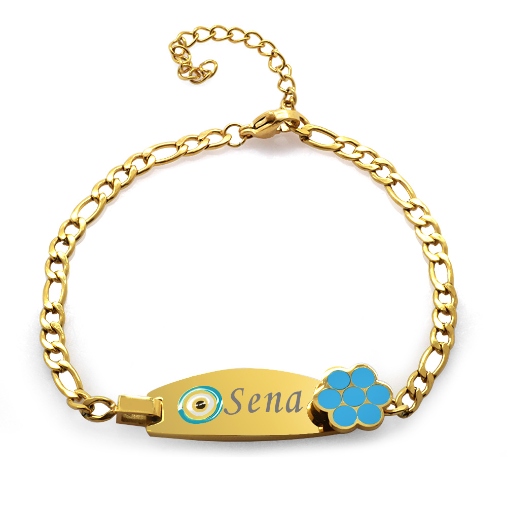Nazar Boncuğu Detaylı Altın Renk Kişiye Özel İsim Yazılı Çelik Kadın Bileklik