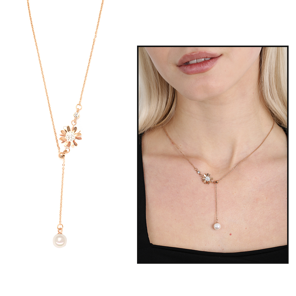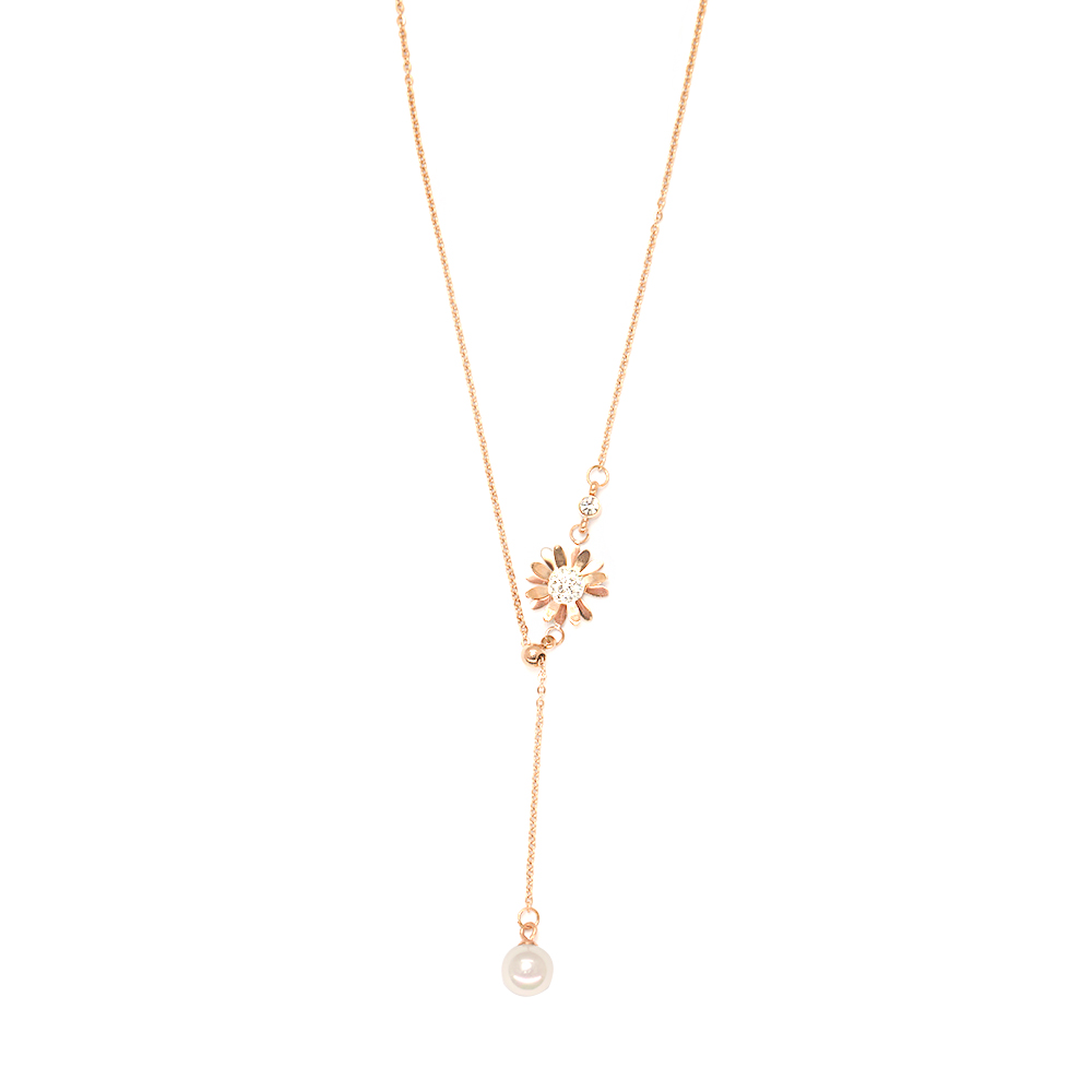 Kır Çiçeği Tasarım Zirkon Taşlı Rose Renk Çelik Kadın Kolye - 1