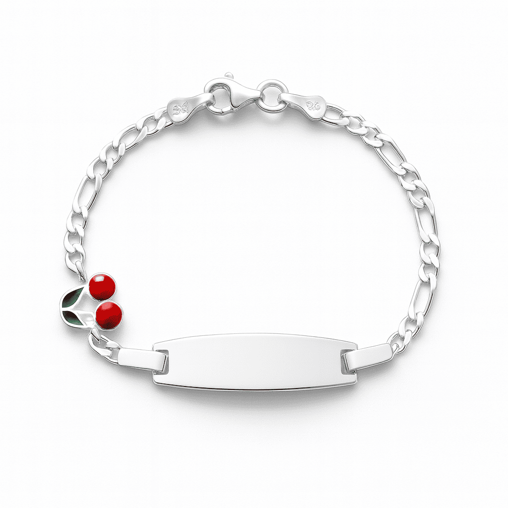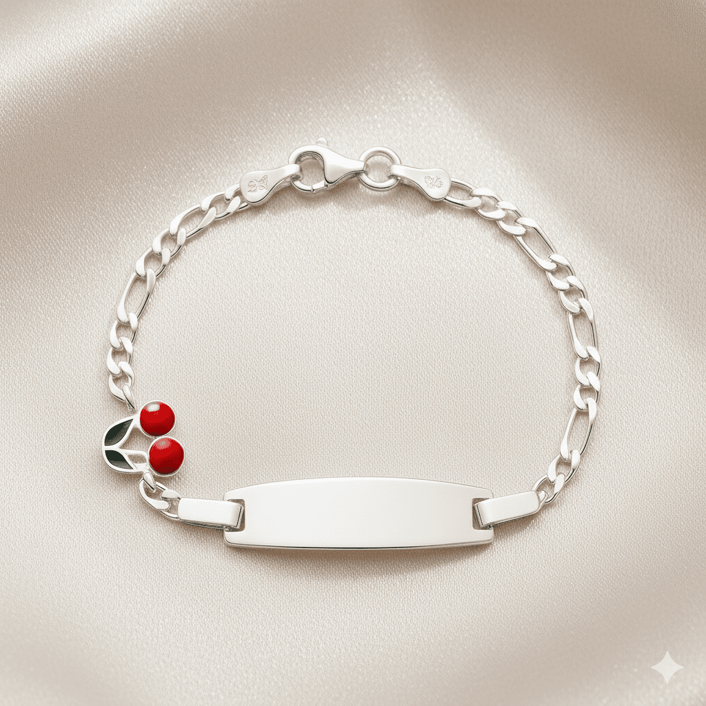 Kiraz Detaylı 925 Ayar Gümüş Zincirli İsme Özel Yazılı Çocuk Bileklik
