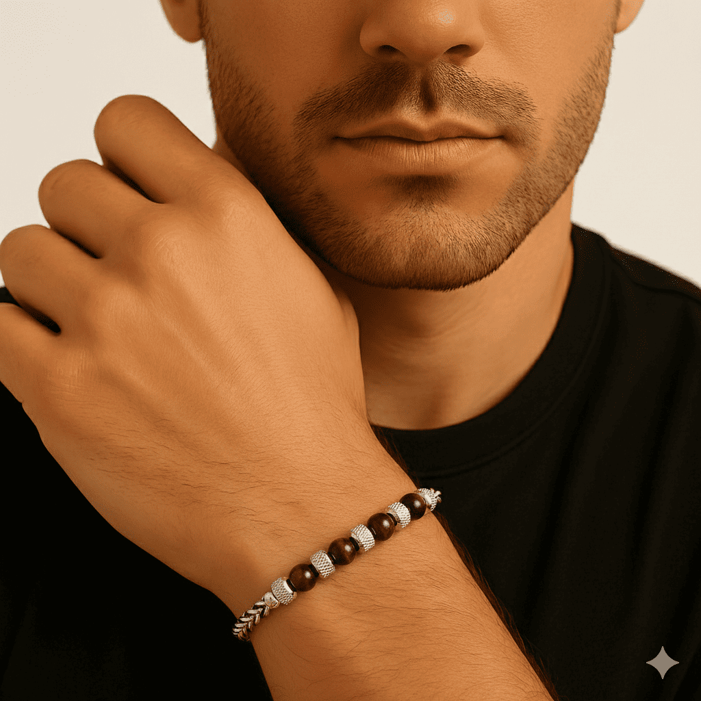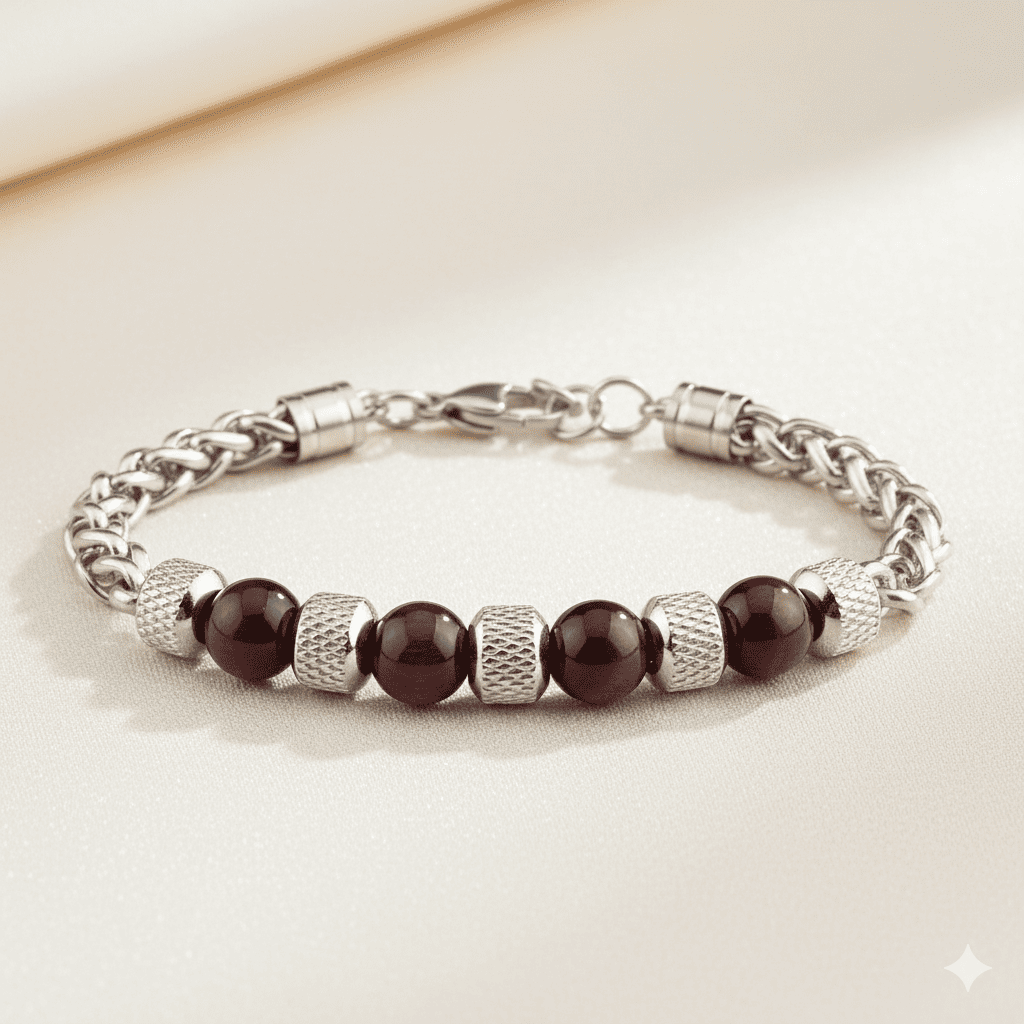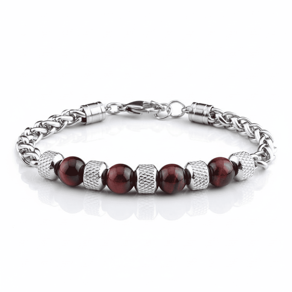 Kırmızı Kaplan Gözü ve Çelik Bileşim Uzunluk Ayarlanabilir Avangart Erkek Bileklik