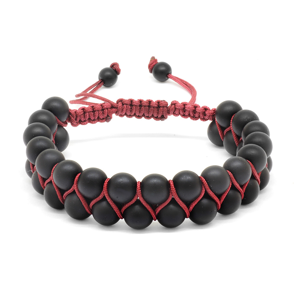Kırmızı Makrome Örgülü Küre Kesim Çift Sıralı Oniks Doğaltaş Bileklik - 2