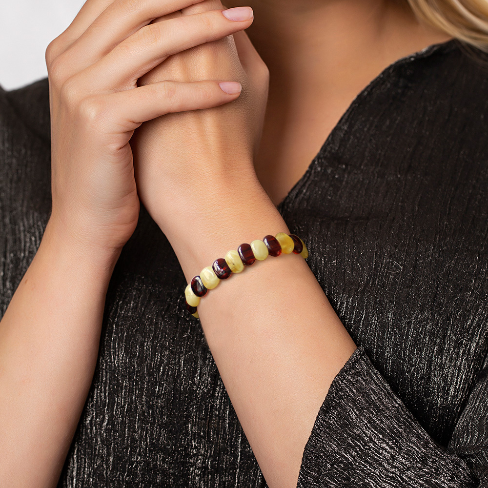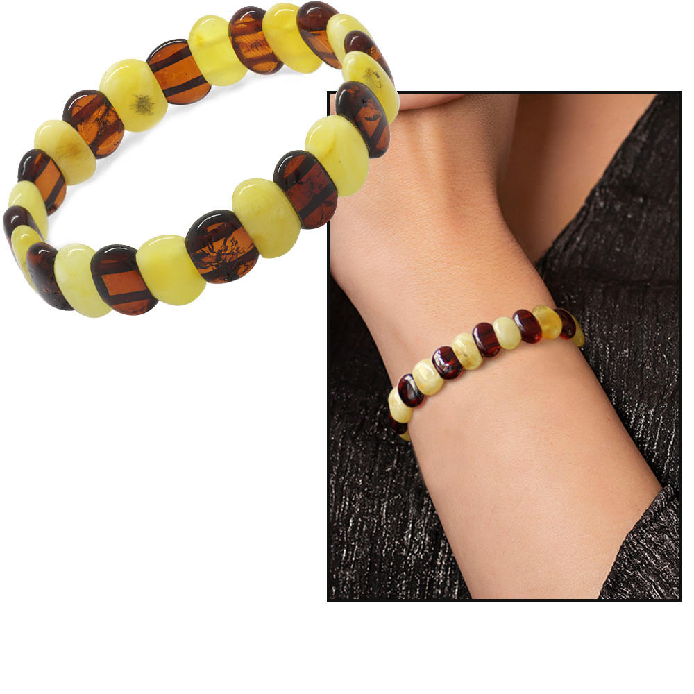 Kırmızı Sarı Renk Doğal Damla Kehribar Kadın Bileklik - 1