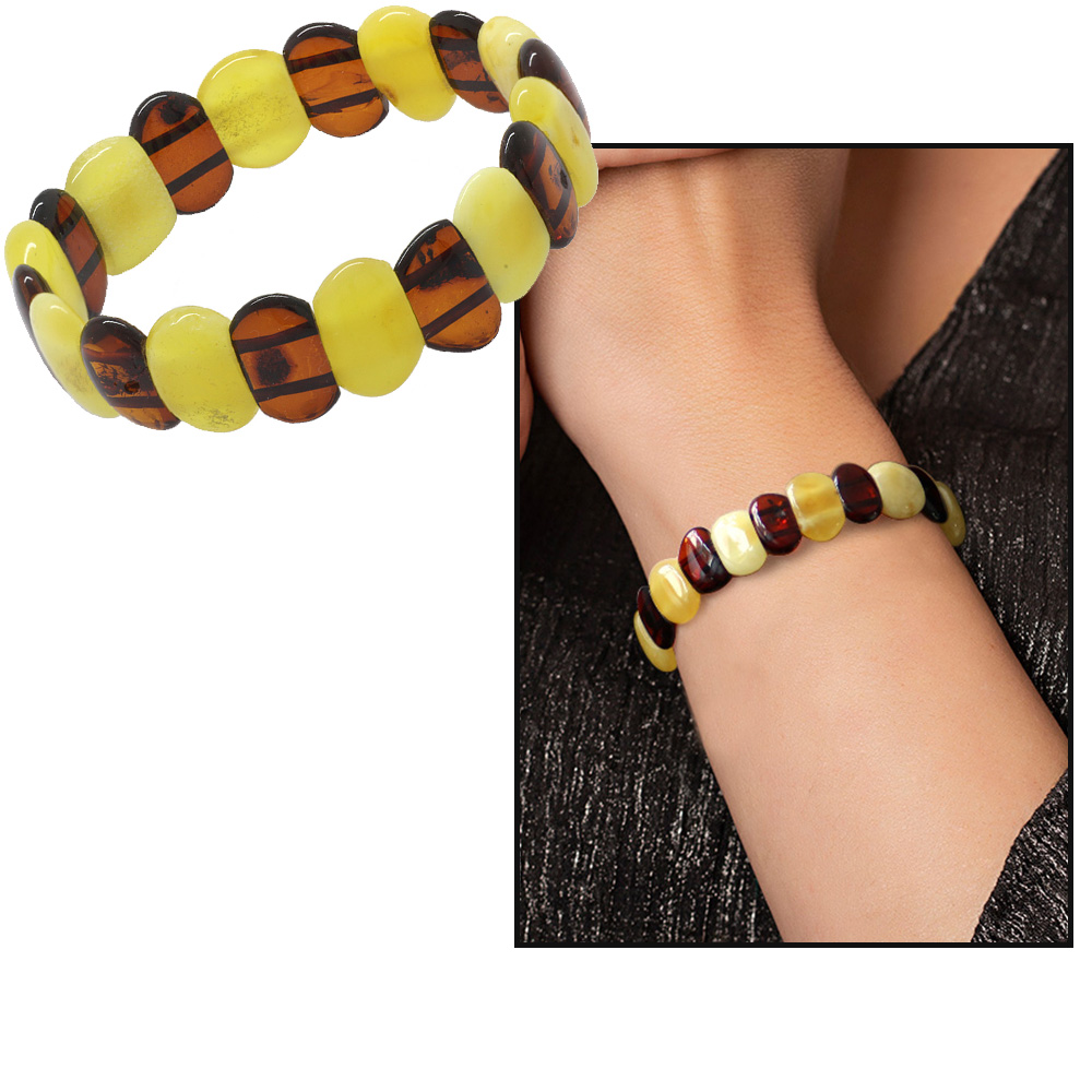 Kırmızı Sarı Renk Maxi Boy Doğal Damla Kehribar Kadın Bileklik - 1