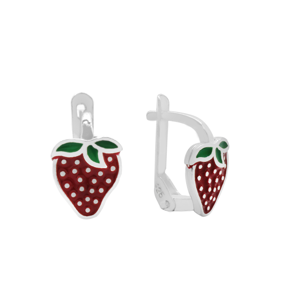 Kırmızı Yeşil Mineli Çilek Tasarım 925 Ayar Gümüş Çocuk Küpe - 1
