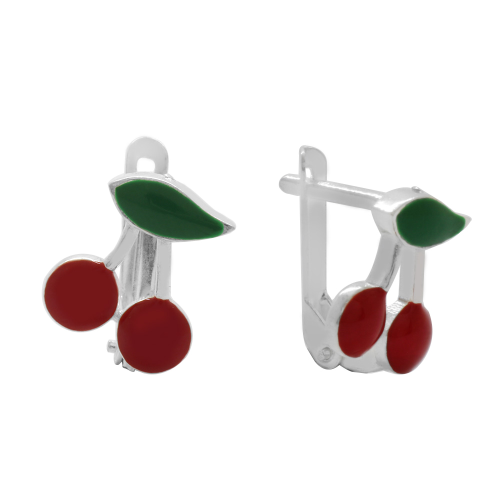 Kırmızı - Yeşil Mineli Kiraz Tasarım 925 Ayar Gümüş Çocuk Küpe