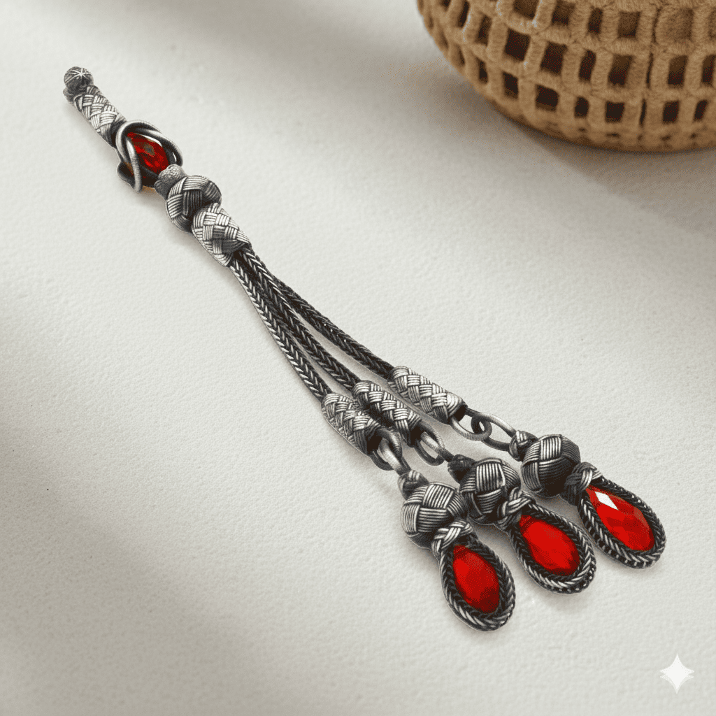 Kırmızı Zirkon Taşlı 3 lü 1000 Ayar Gümüş Kazaz Püskül
