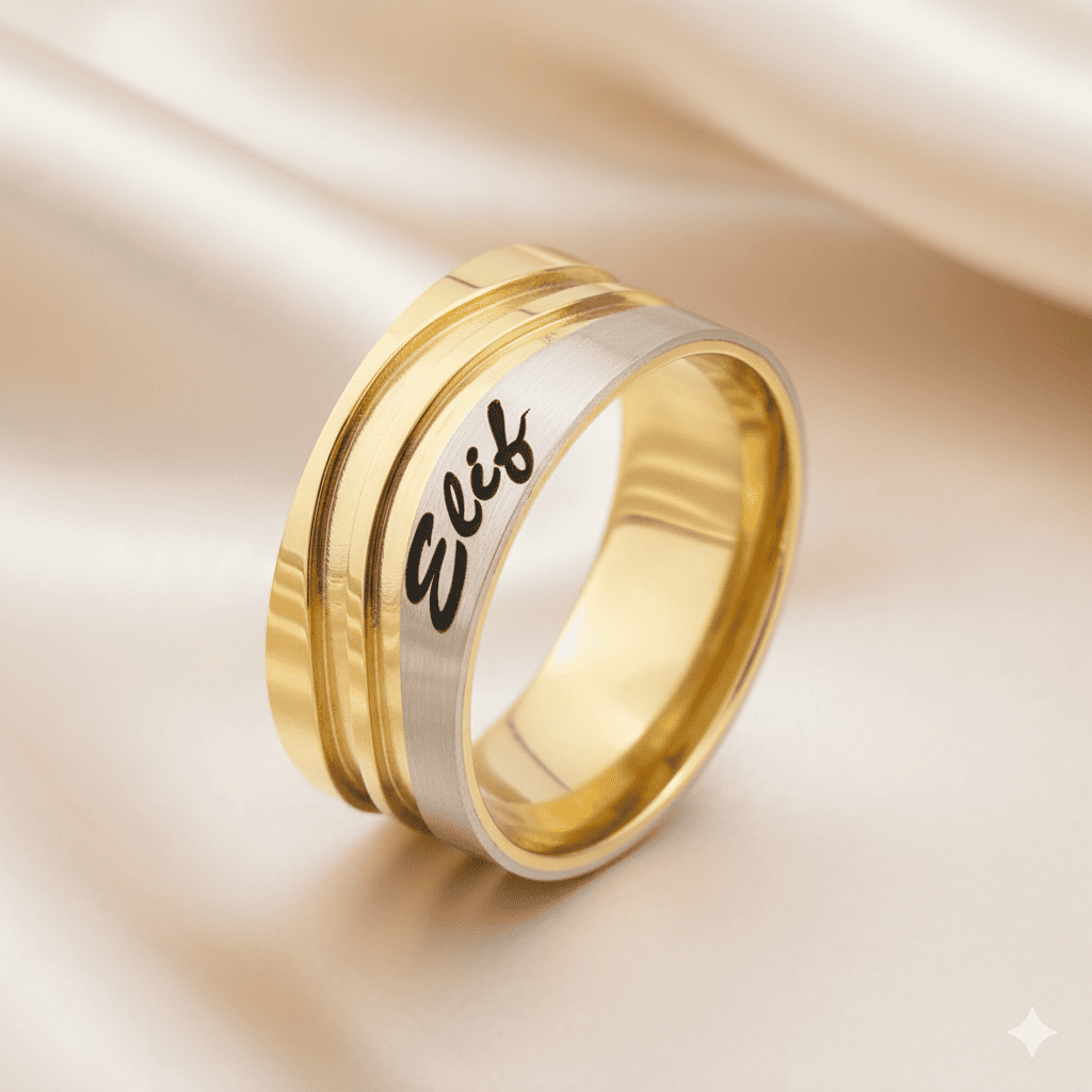 İsme Özel Yazılı Su Yolu Tasarım 925 Ayar Gümüş Erkek Alyans