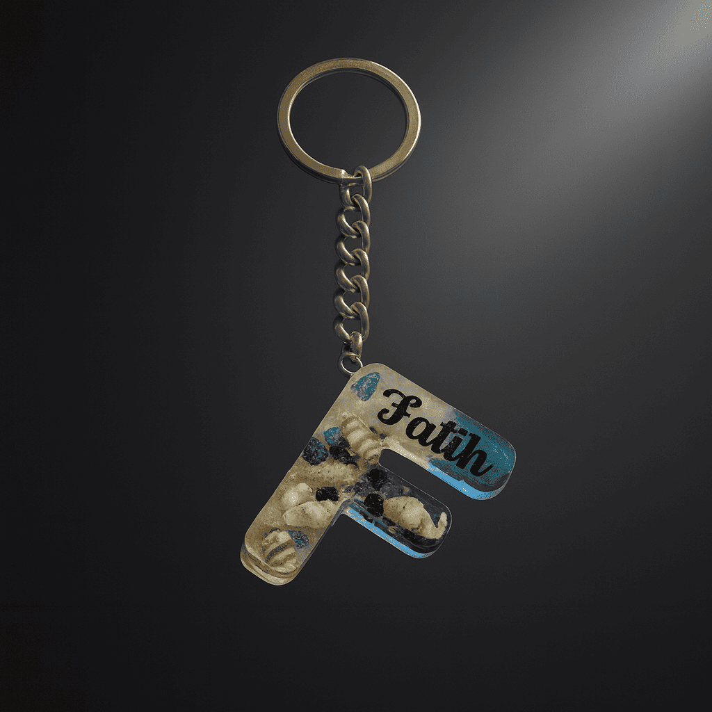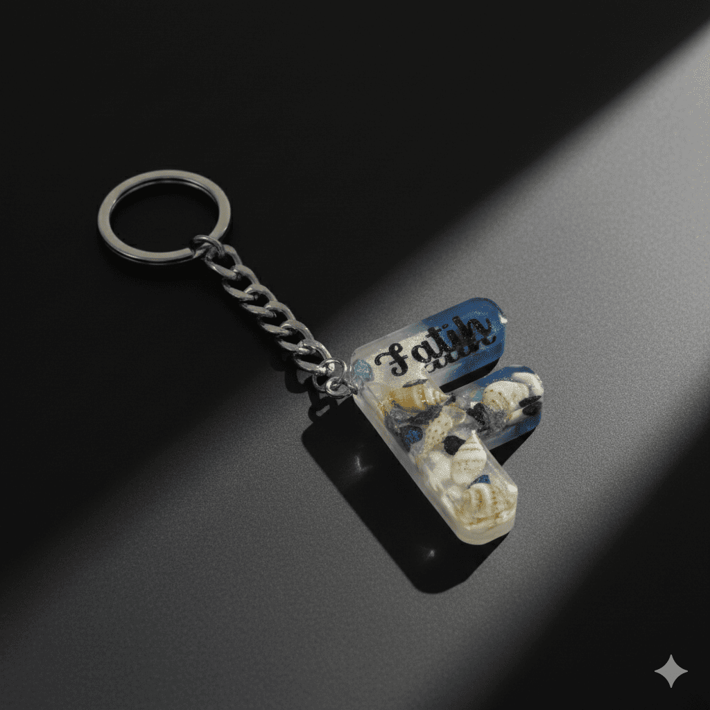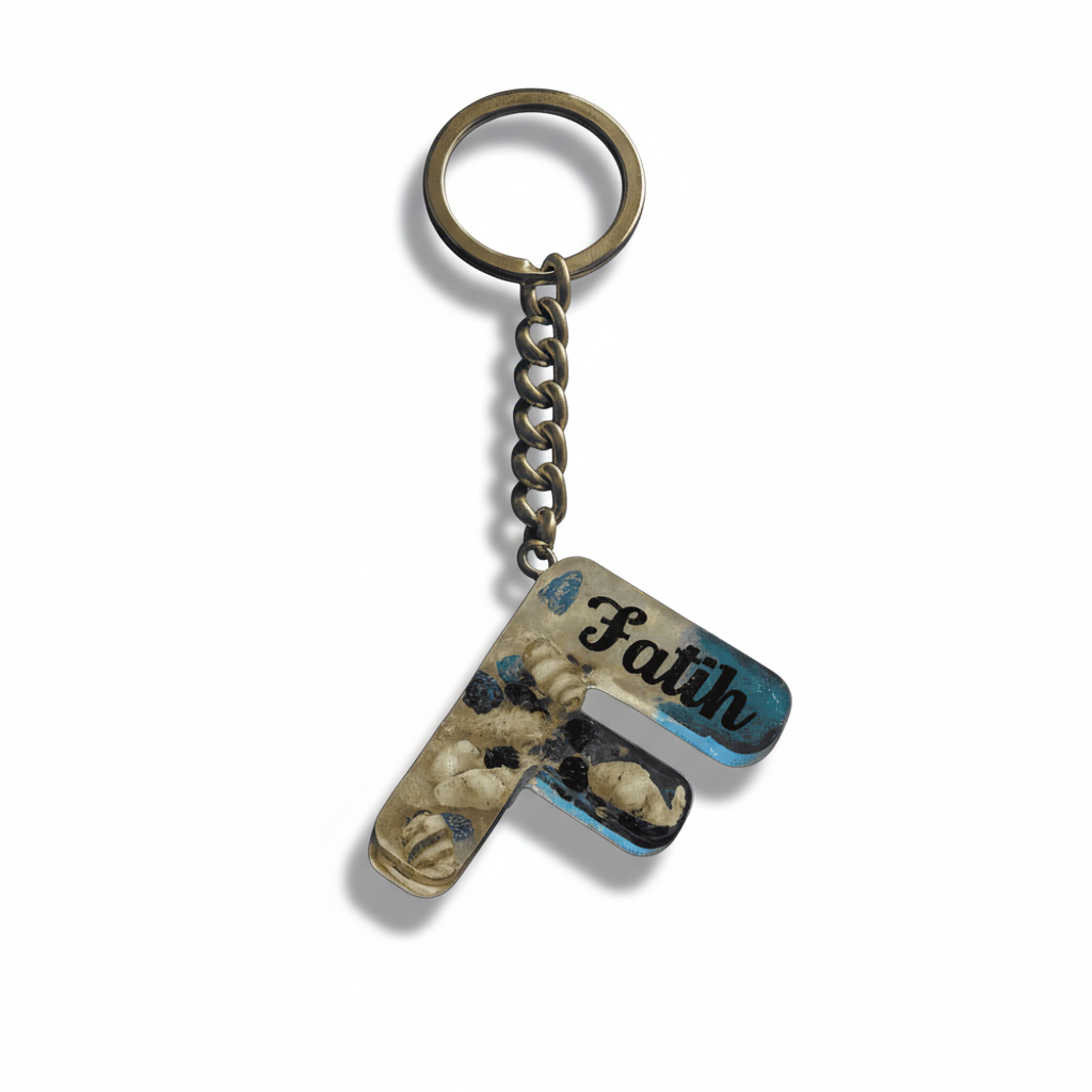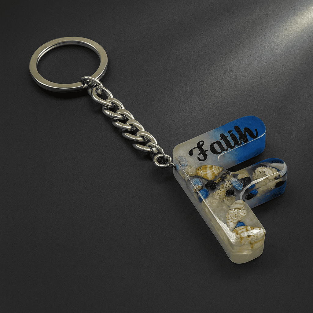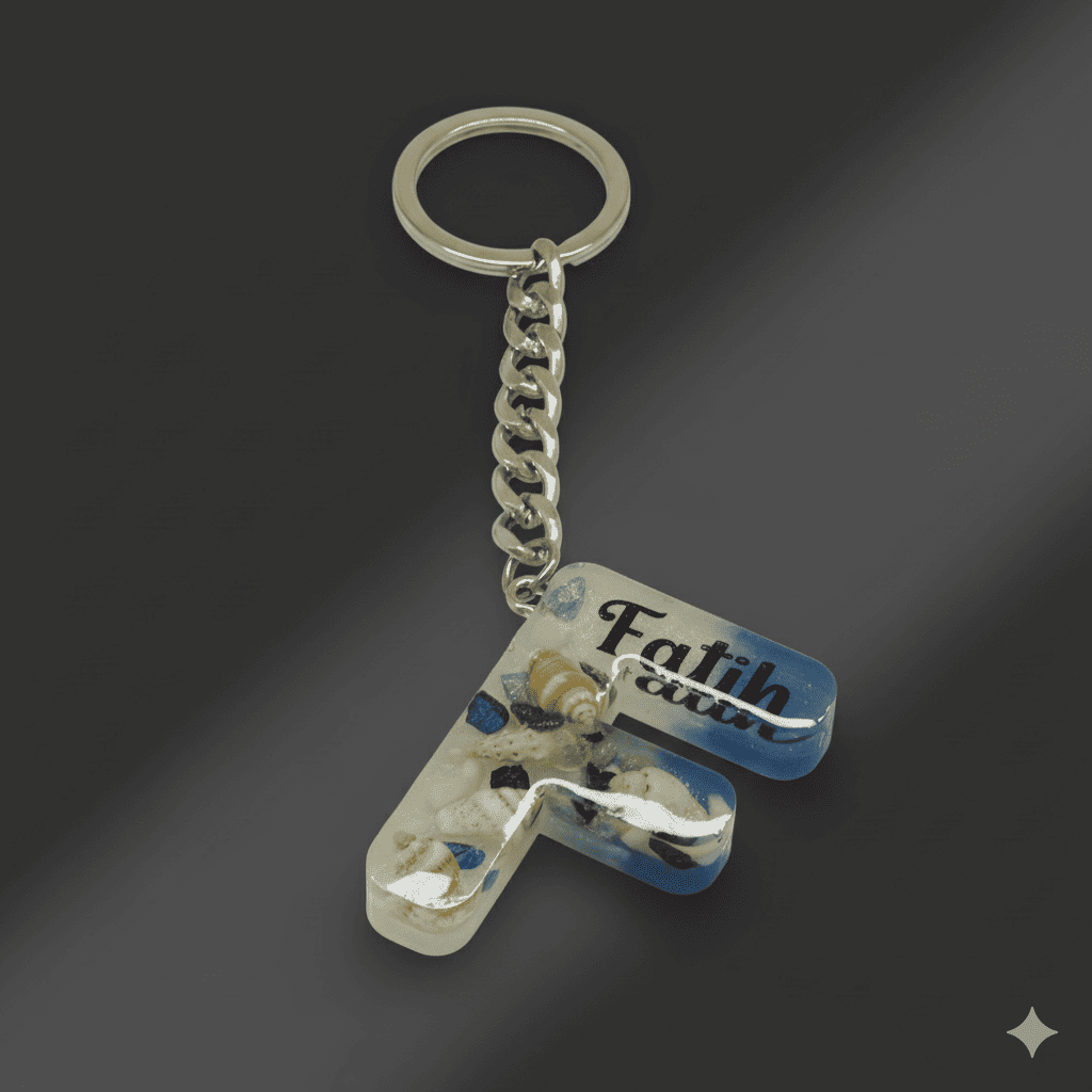 F Harfi - Kişiye Özel - Epoksi Reçine Anahtarlık - El Yapımı - Çelik Tokalı