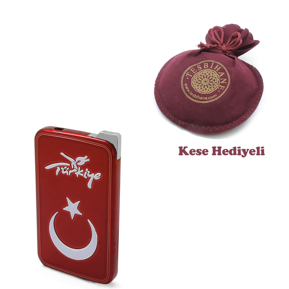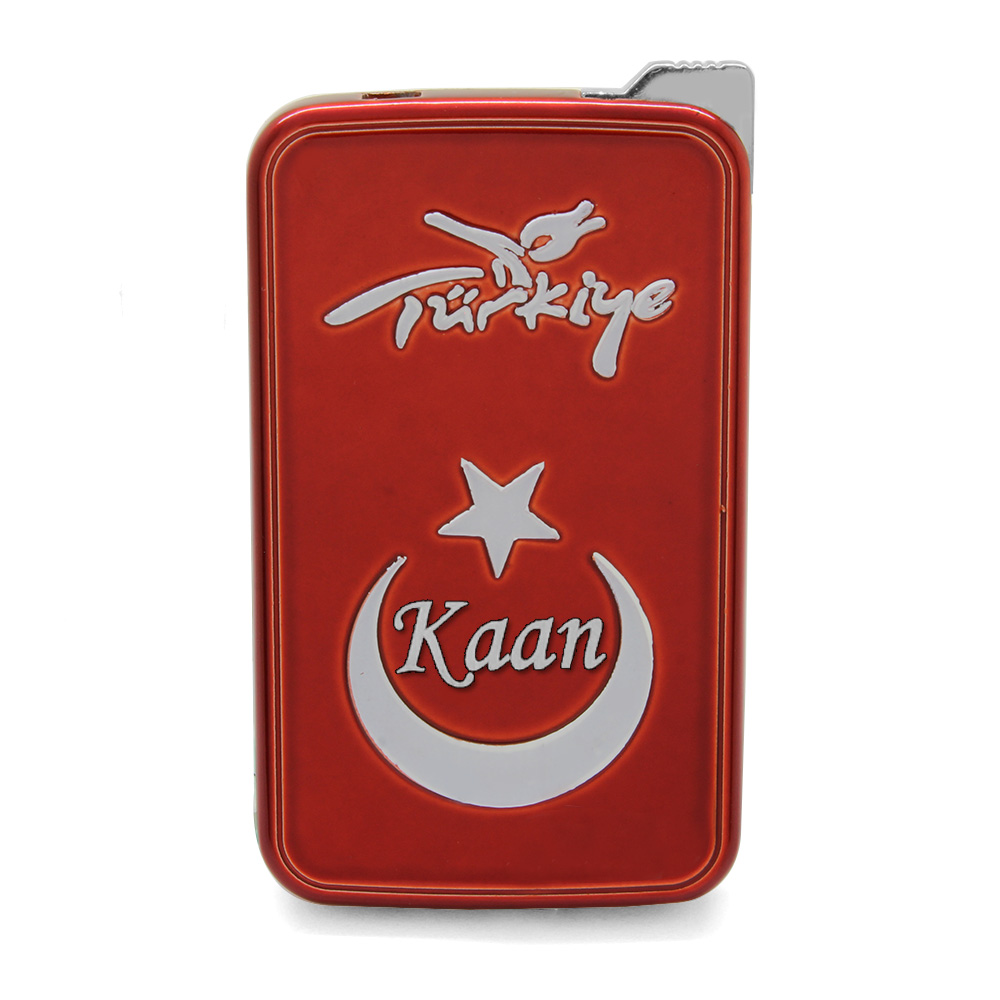 İsme Özel Yazılı Ay Yıldız Temalı Yandan Mekanizmalı Kırmızı Beyaz Renk Manyotorlu Metal Çakmak