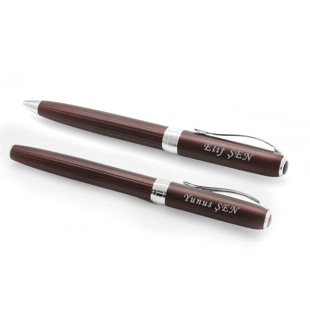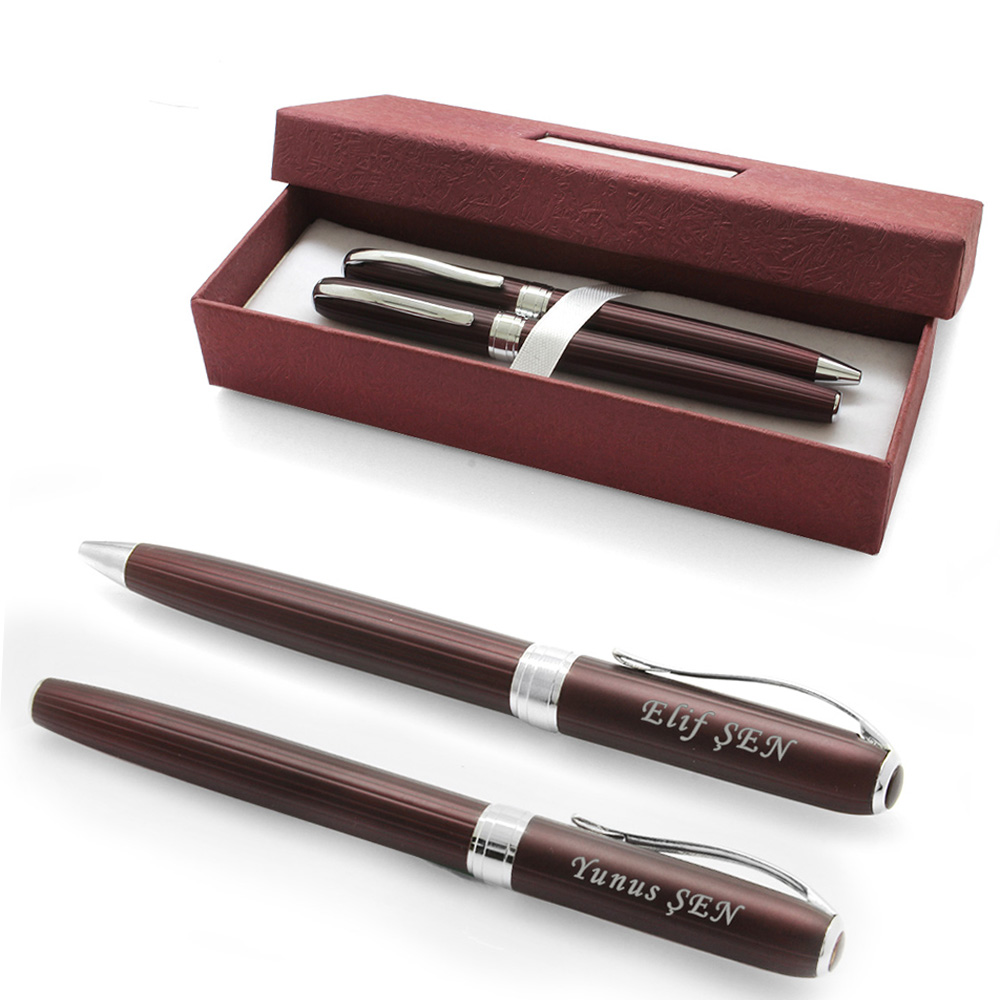 İsme Özel Yazılı Bordo Renk Roller Tükenmez Kalem Seti