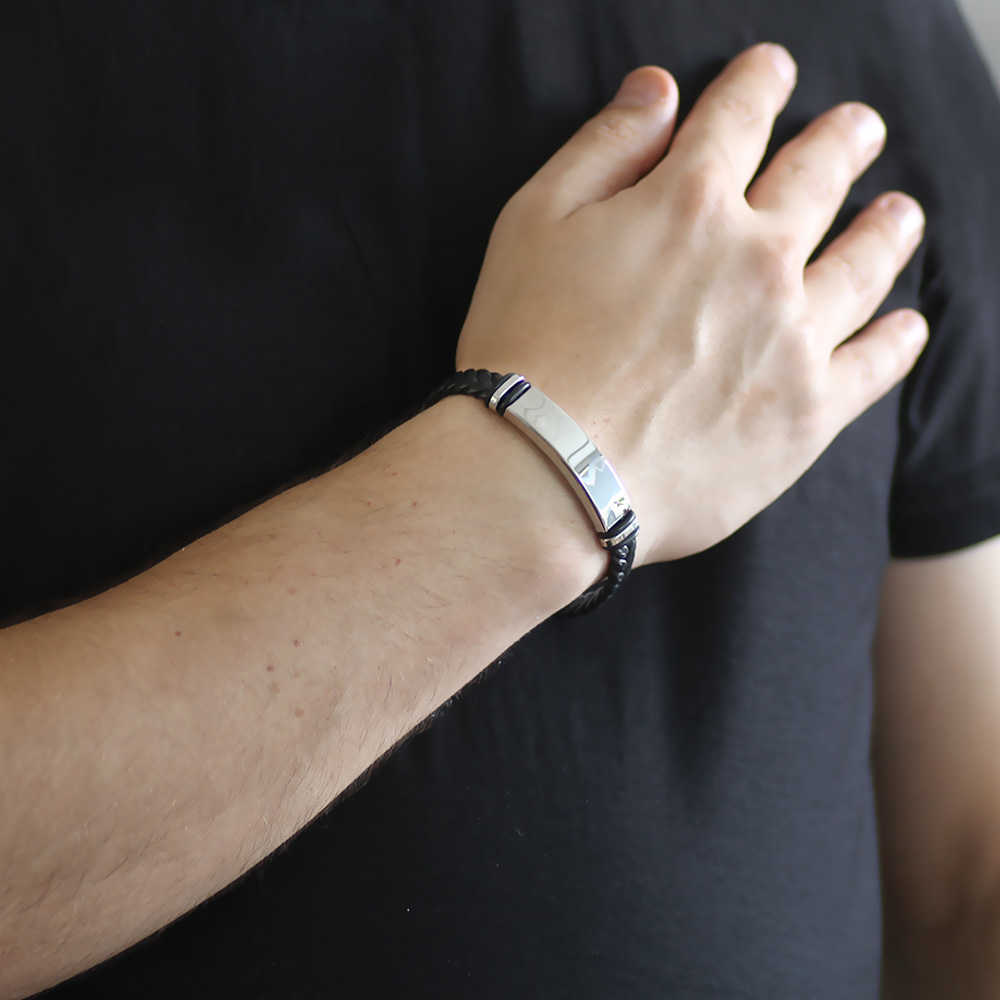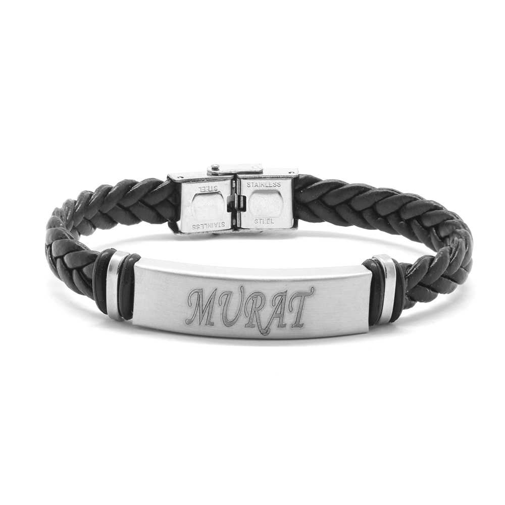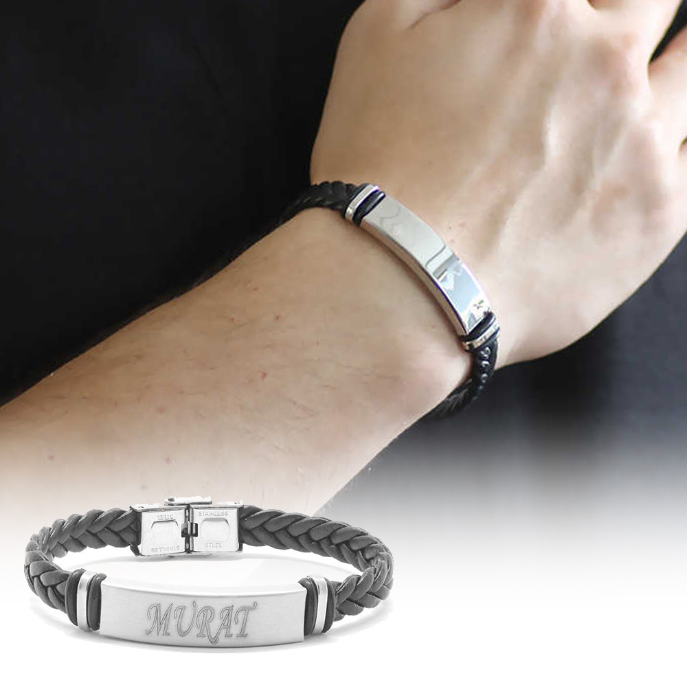 İsme Özel Yazılı Çelik Deri Bileklik - M2