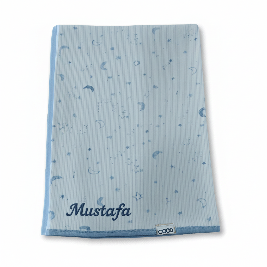 İsme Özel Nakışlı Gökyüzü Temalı Mavi Bebek Battaniyesi