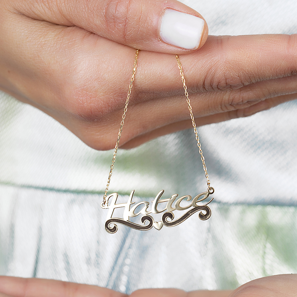 İsme Özel Yazılı Altın Renk 925 Ayar Gümüş Bayan Kolye