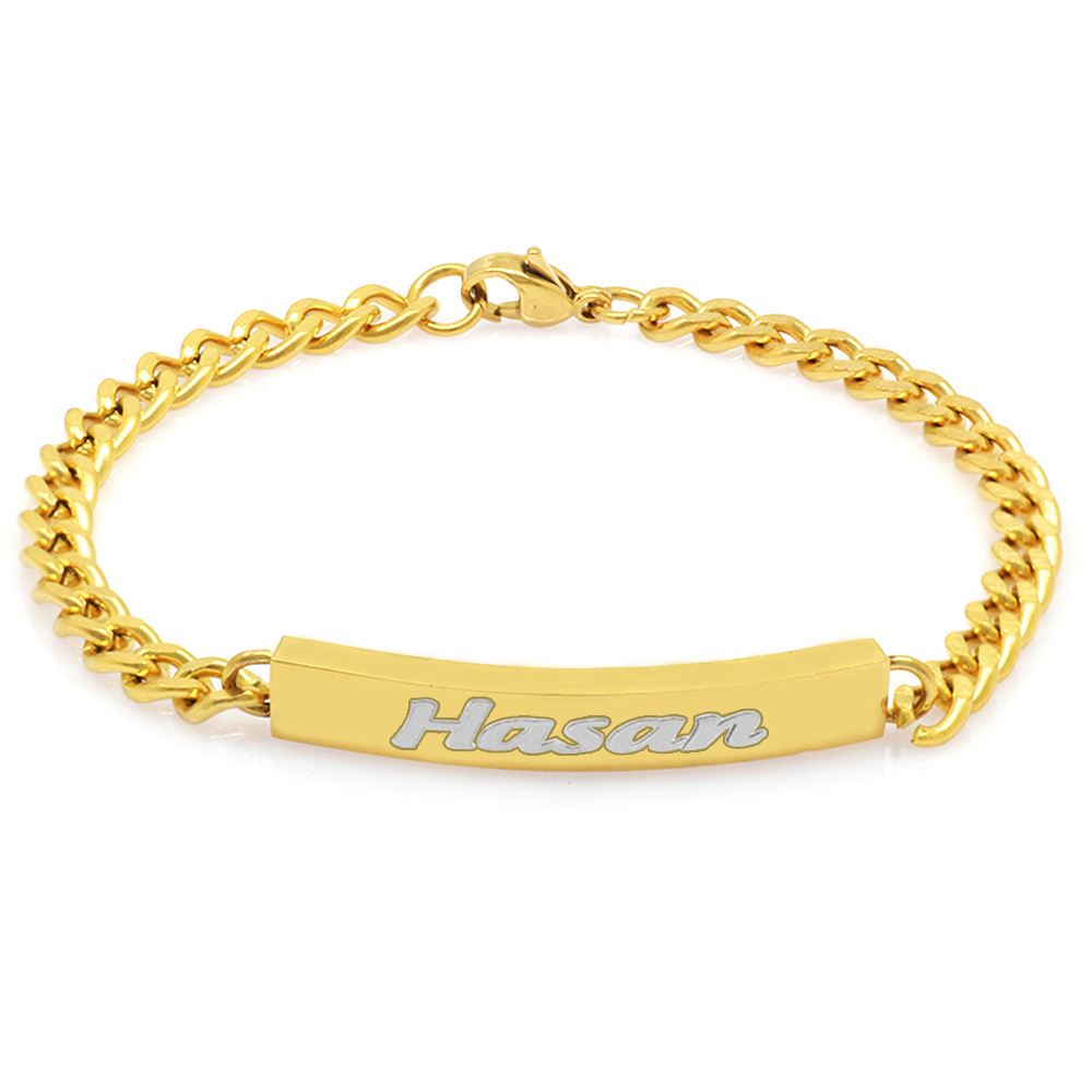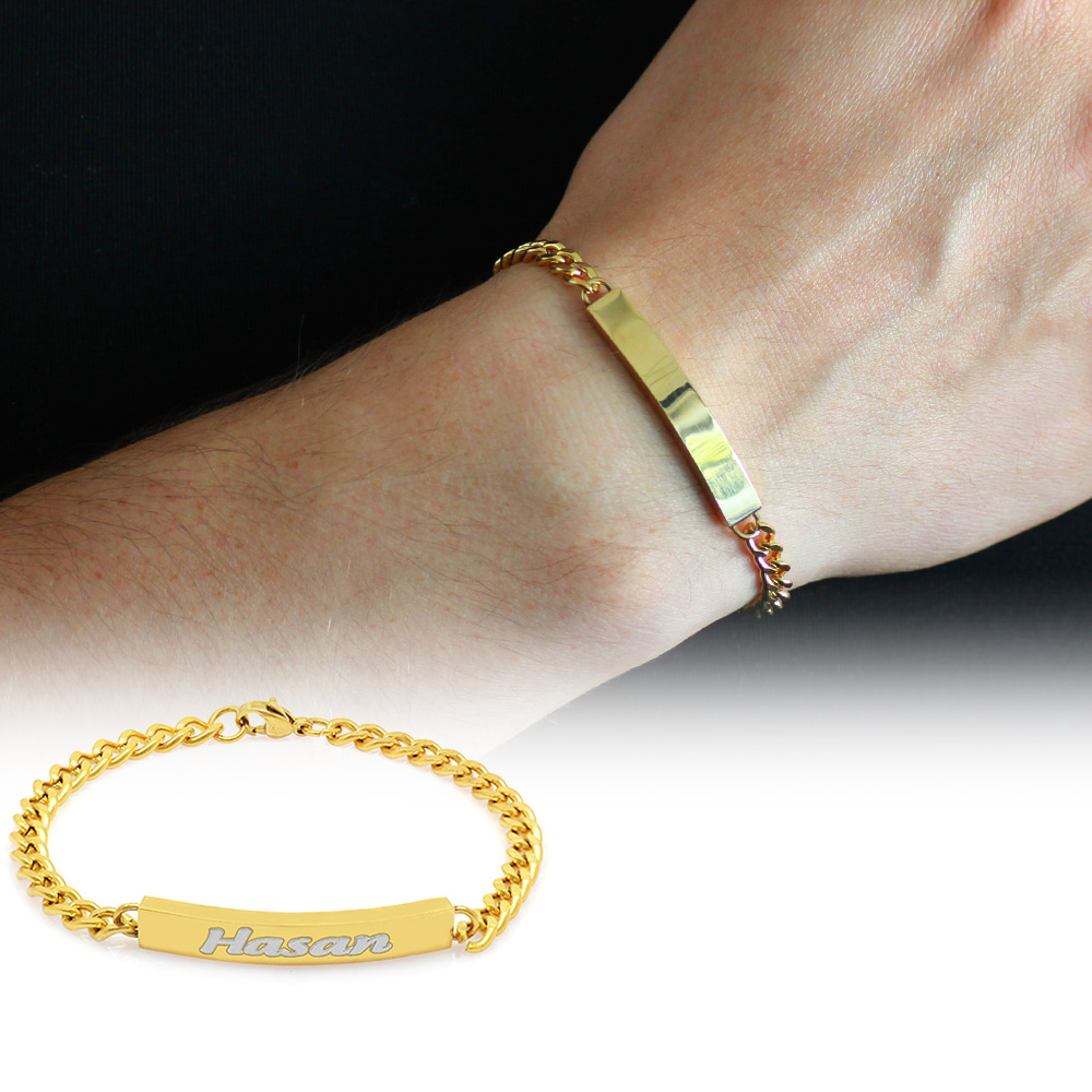 Kişiye Özel İsim Yazılı Altın Renk Çelik Erkek Gurmet Bileklik - 1