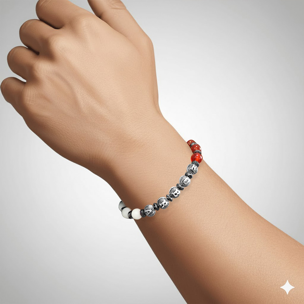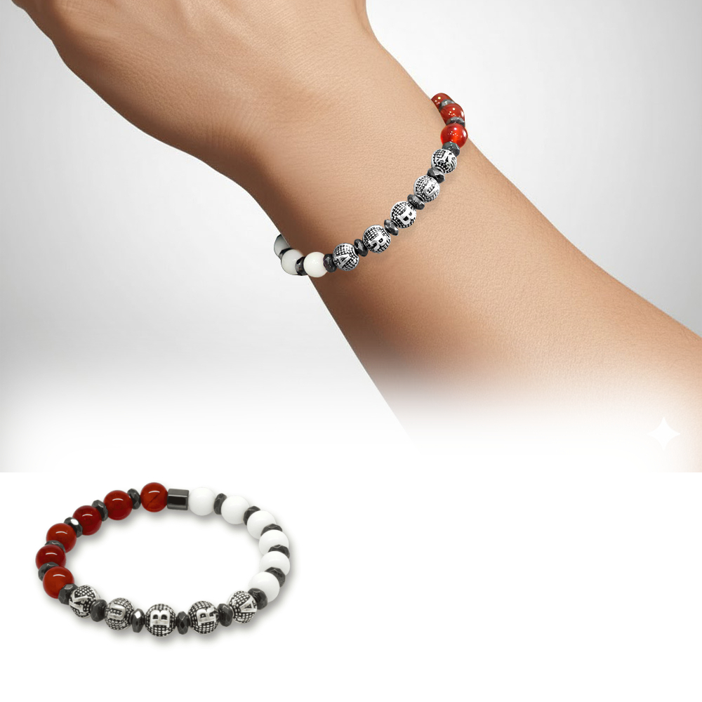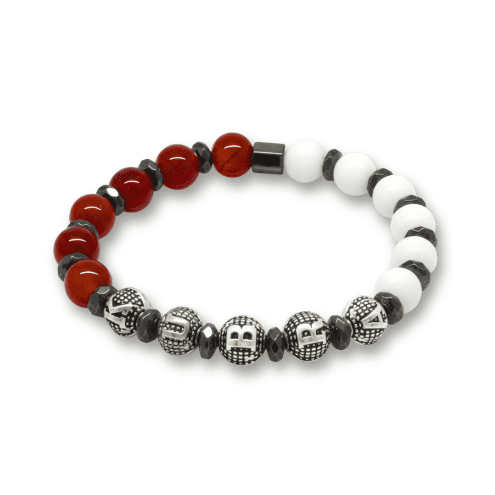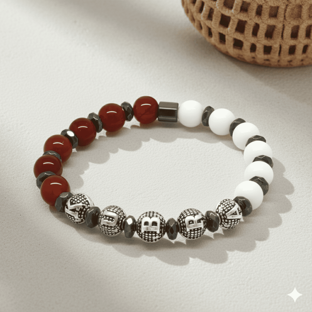 İsme Özel Yazılı Küre Kesim Kırmızı Beyaz Jade Akik Hematit Doğaltaş Erkek Taraftar Bileklik