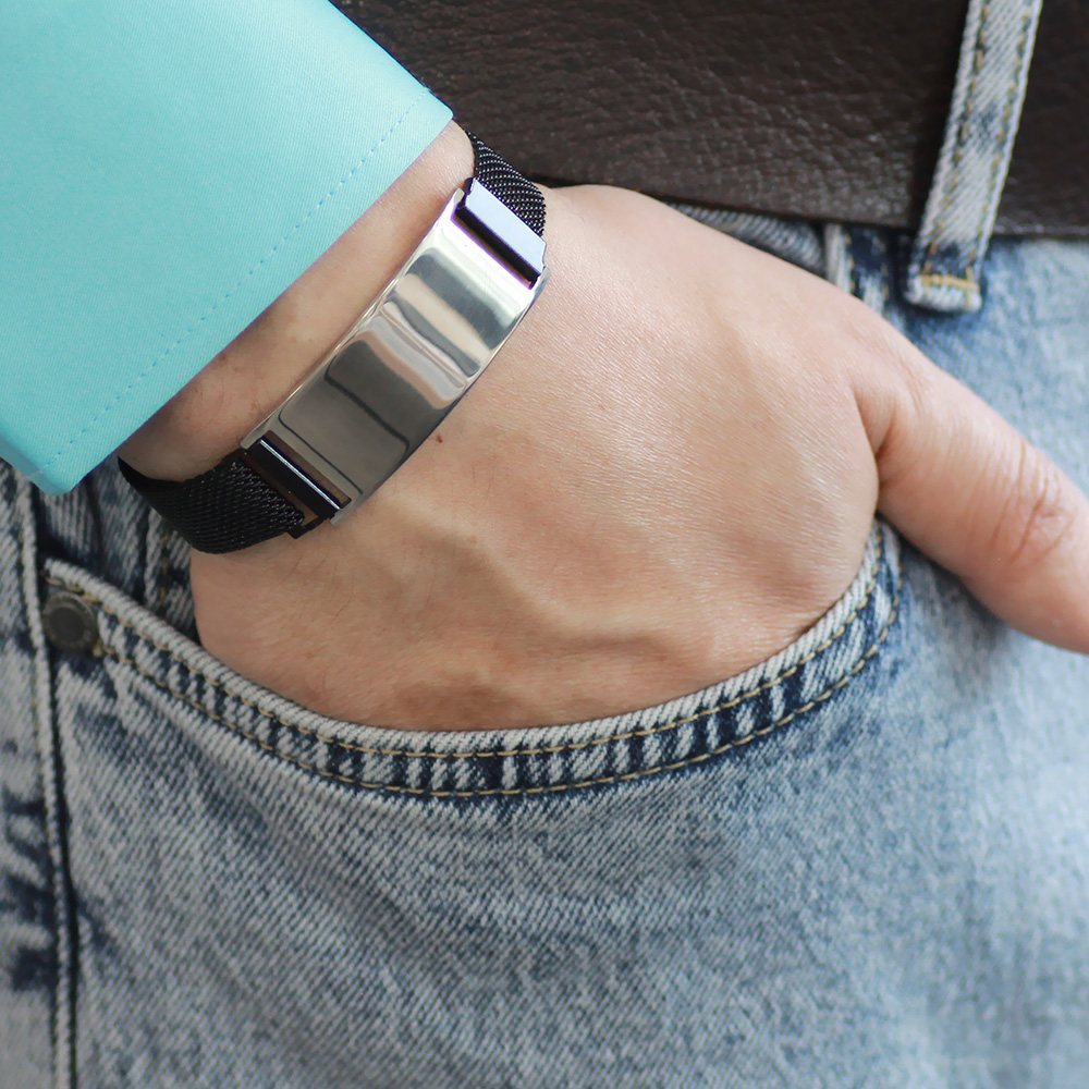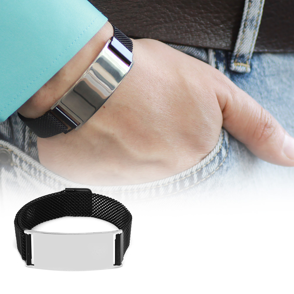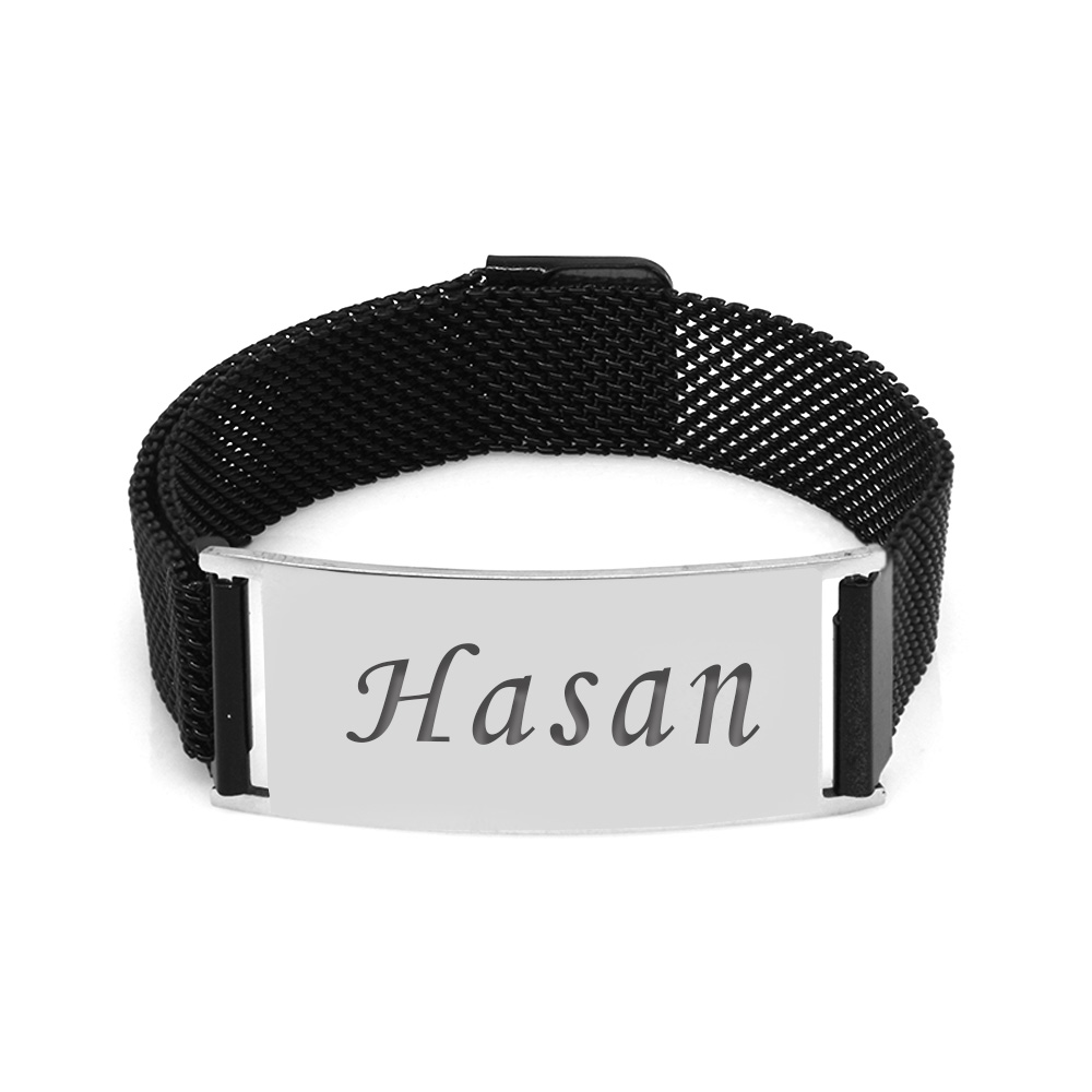 Kişiye Özel İsim Yazılı Magnet Kapamalı Siyah Renk Çelik Erkek Hasır Bileklik - 1