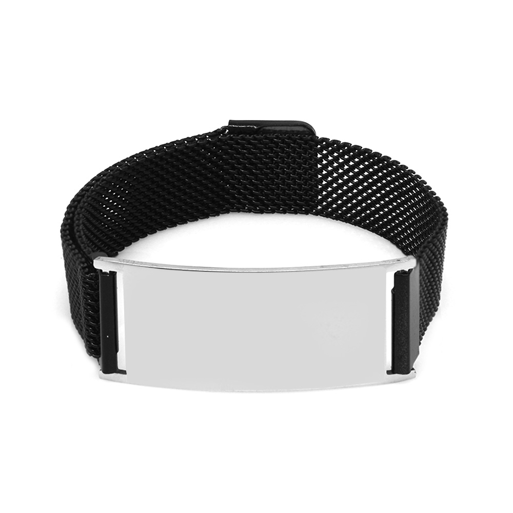 Kişiye Özel İsim Yazılı Magnet Kapamalı Siyah Renk Çelik Erkek Hasır Bileklik