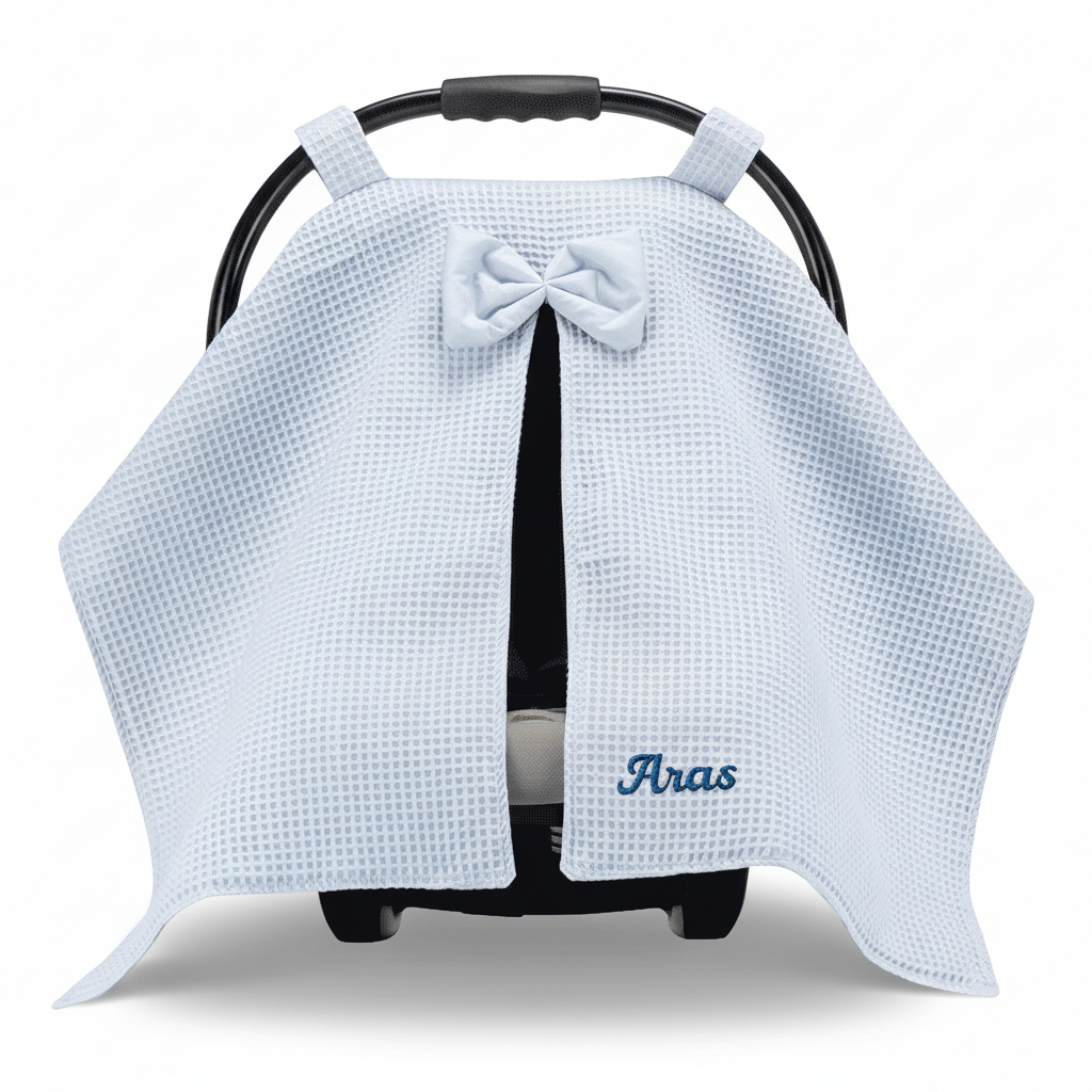 İsme Özel Nakışlı Mavi Renk Bebek Puset Örtüsü