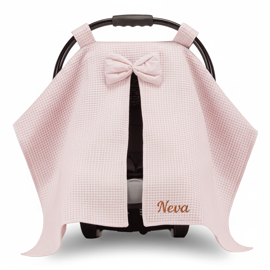İsme özel yazılı pembe puset örtüsü, 0–36 ay arası bebekler için hem koruyucu hem de şık bir üründür. %100 pamuk penye kumaşı sayesinde nefes alabilen, yumuşak ve konforlu bir kullanım sunar. Pembe tonlarıyla zarif bir görünüm kazanan örtü, bebeğinizi güneşten, rüzgardan ve dış etkilerden korurken üzerine işlenen özel isim nakışıyla kişisel bir dokunuş ekler. Günlük kullanımda pratikliği ve estetik duruşuyla annelerin vazgeçilmez yardımcısıdır.