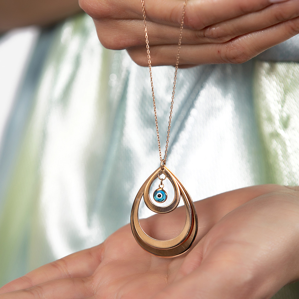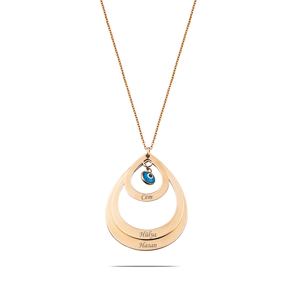 İsme Özel Yazılı Rose Renk 925 Ayar Gümüş Bayan Üç Damla Kolye