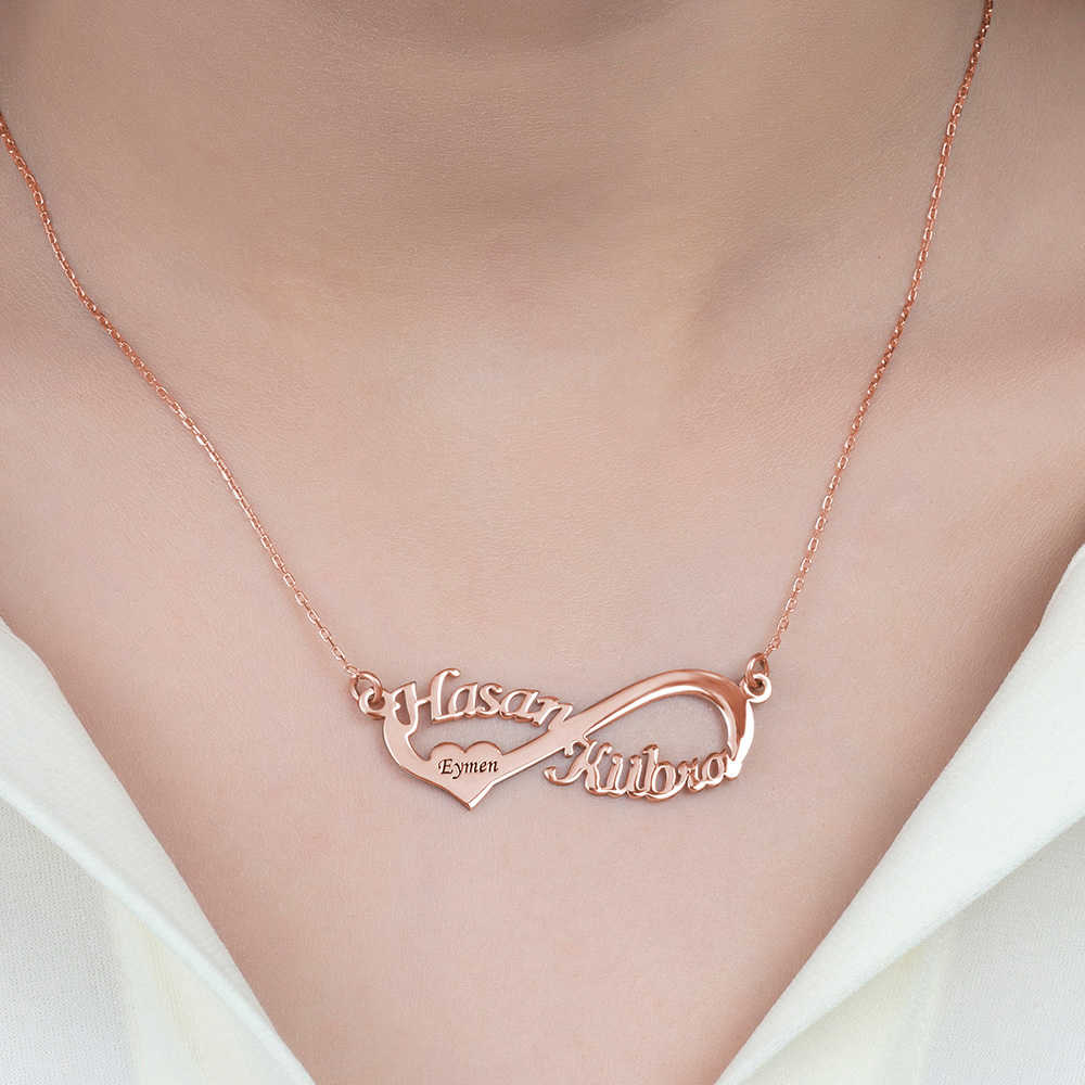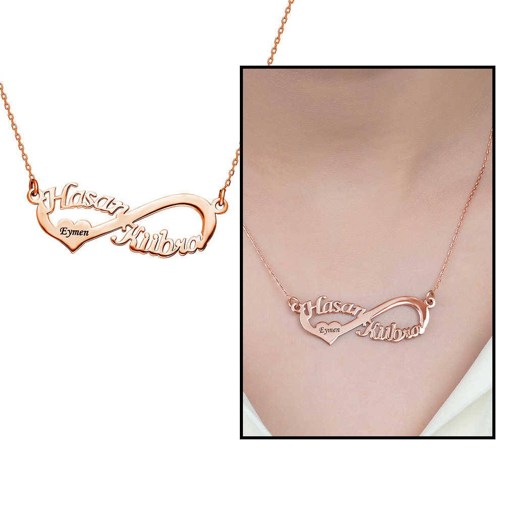İsme Özel Yazılı Rose Renk 925 Ayar Gümüş Sonsuzluk Kolye