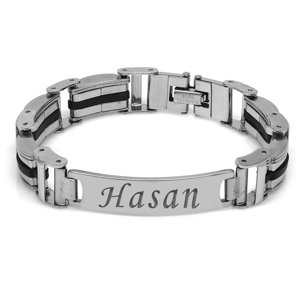 İsme Özel Yazılı Gümüş Renk Çelik Erkek Bileklik - M1 - 1