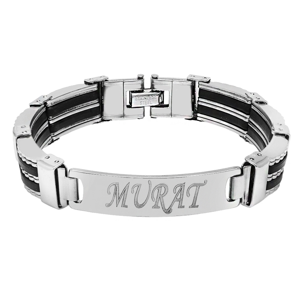 İsme Özel Yazılı Gümüş Renk Çelik Erkek Bileklik - M2