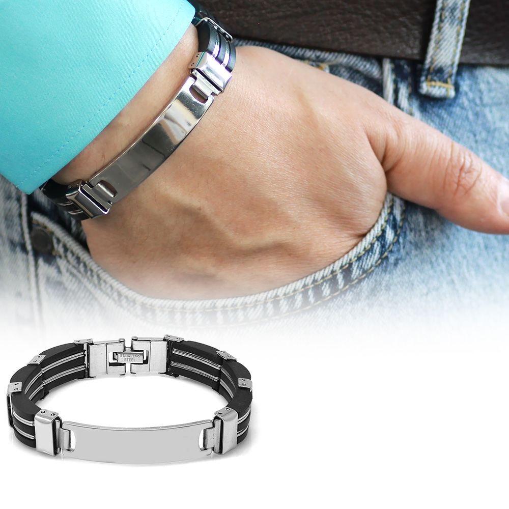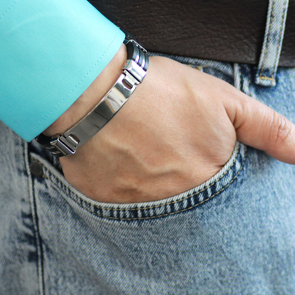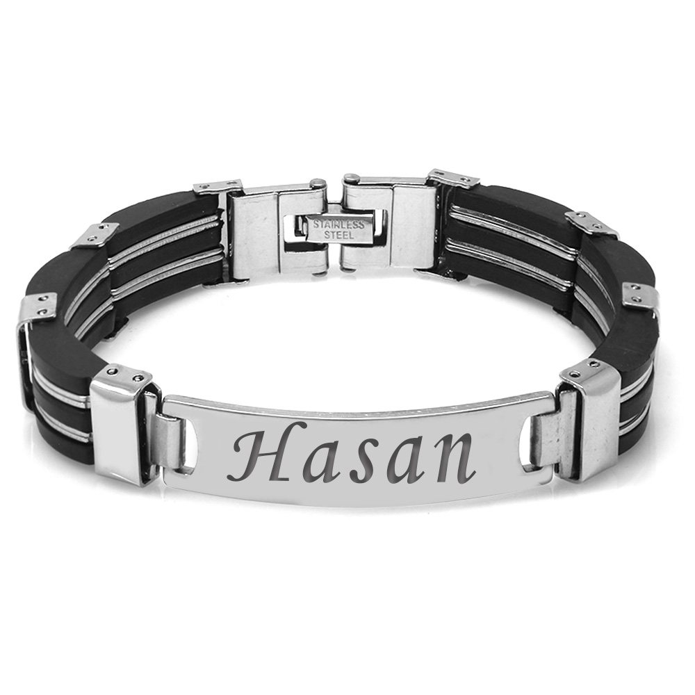 İsme Özel Yazılı Gümüş Renk Çelik Erkek Bileklik - M3 - 1