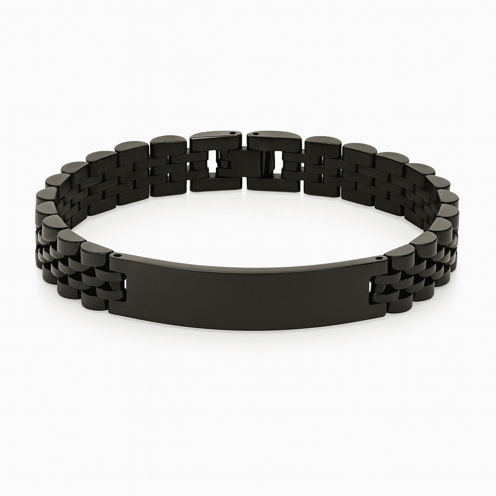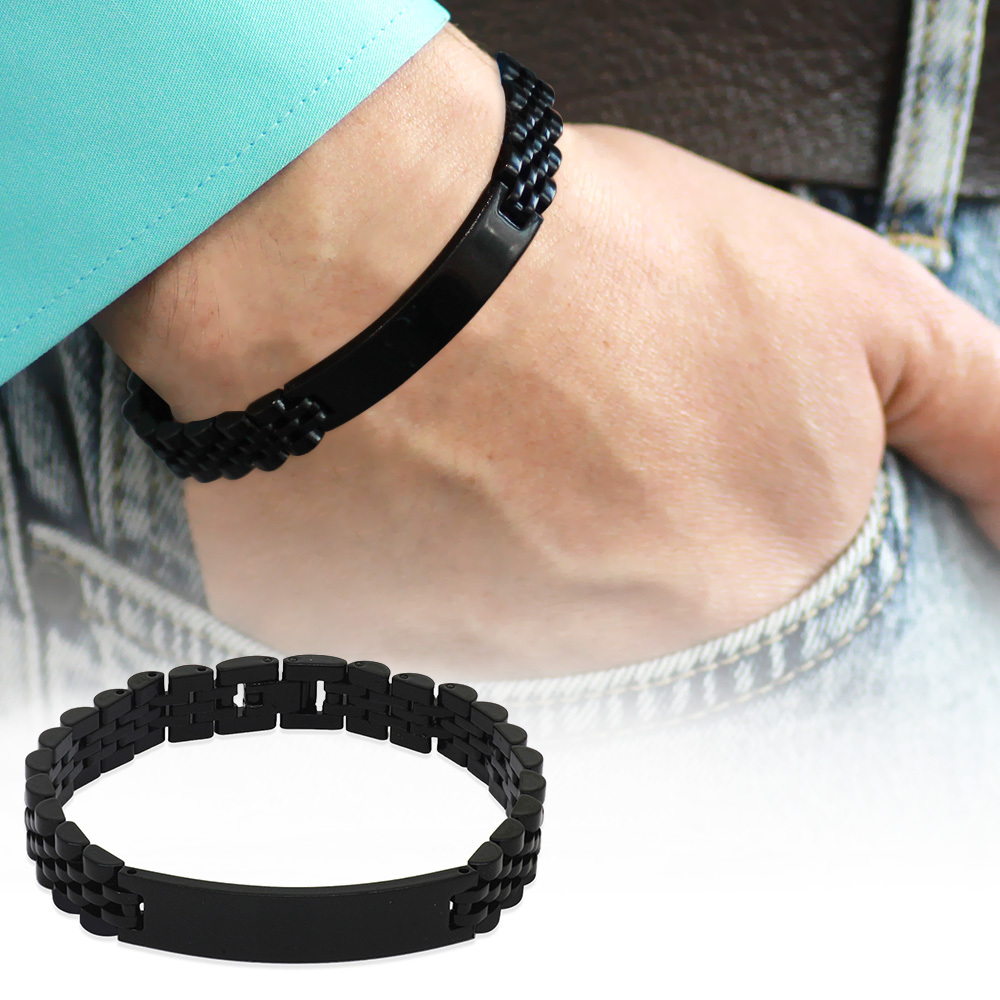 İsme Özel Yazılı Siyah Renk Çelik Erkek Bileklik