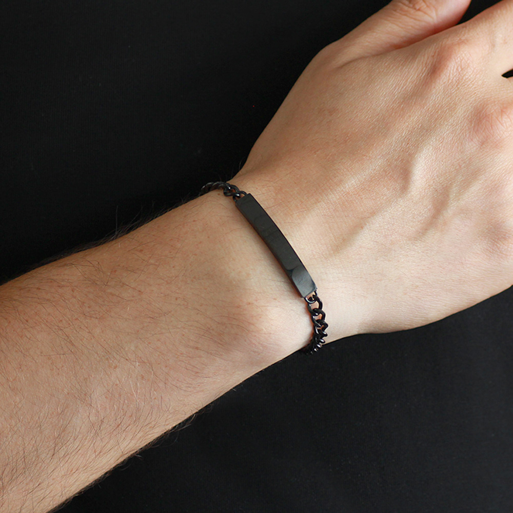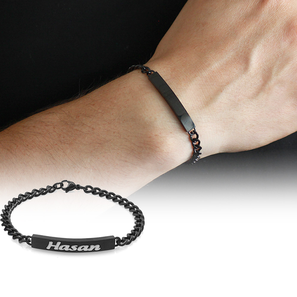 Kişiye Özel İsim Yazılı Siyah Renk Çelik Erkek Gurmet Bileklik - 1