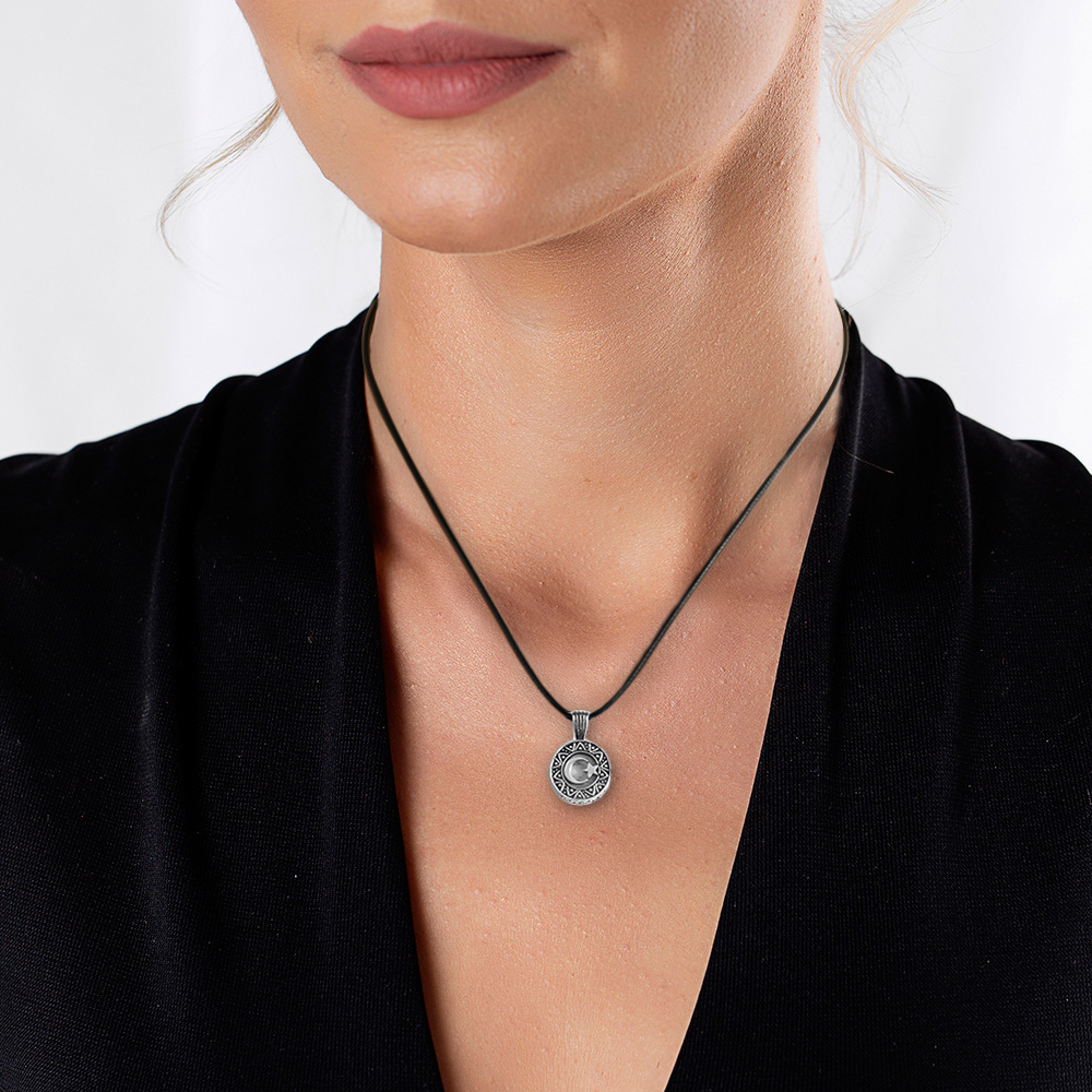 İsme Özel Yazılı Üzeri Ayyıldız Temalı 925 Ayar Gümüş Kadın Cevşen Kolye