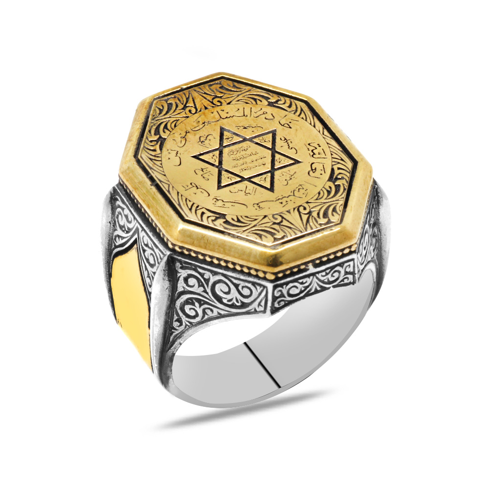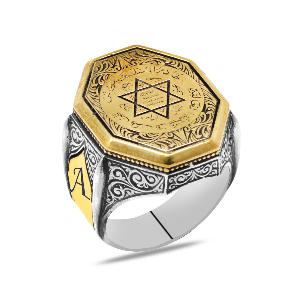 İsme Özel Yazılı Mührü Süleyman İşlemeli 925 Ayar Gümüş Erkek Yüzük